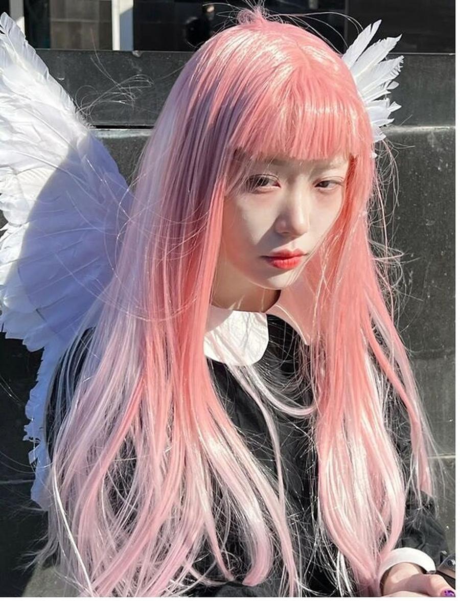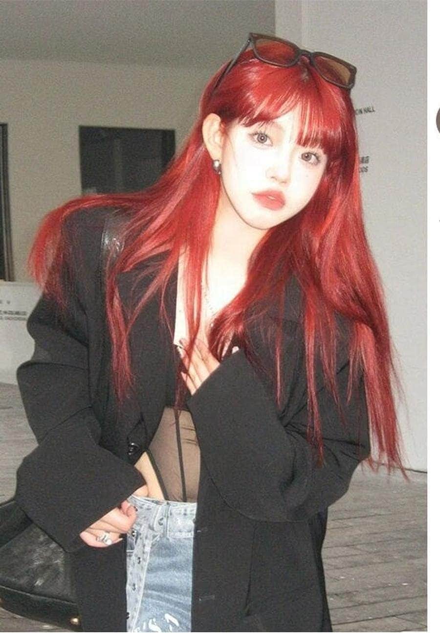 ウィッグ女性ロングヘアーのシミュレーションフルヘッドセットワインレッドの個性的な髪色ストレートヘアファッションの新モデル かつら cos ぜんちょうかつら