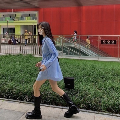 毎日着たいデザイン早い者勝ち シャツワンピ 韓国語版 ジェントルスタイル ミニスカート 怠惰な風 ユニークなデザイン 長袖 トップス ゆったりする 百掛け 大人気 オシャレ 快適である
