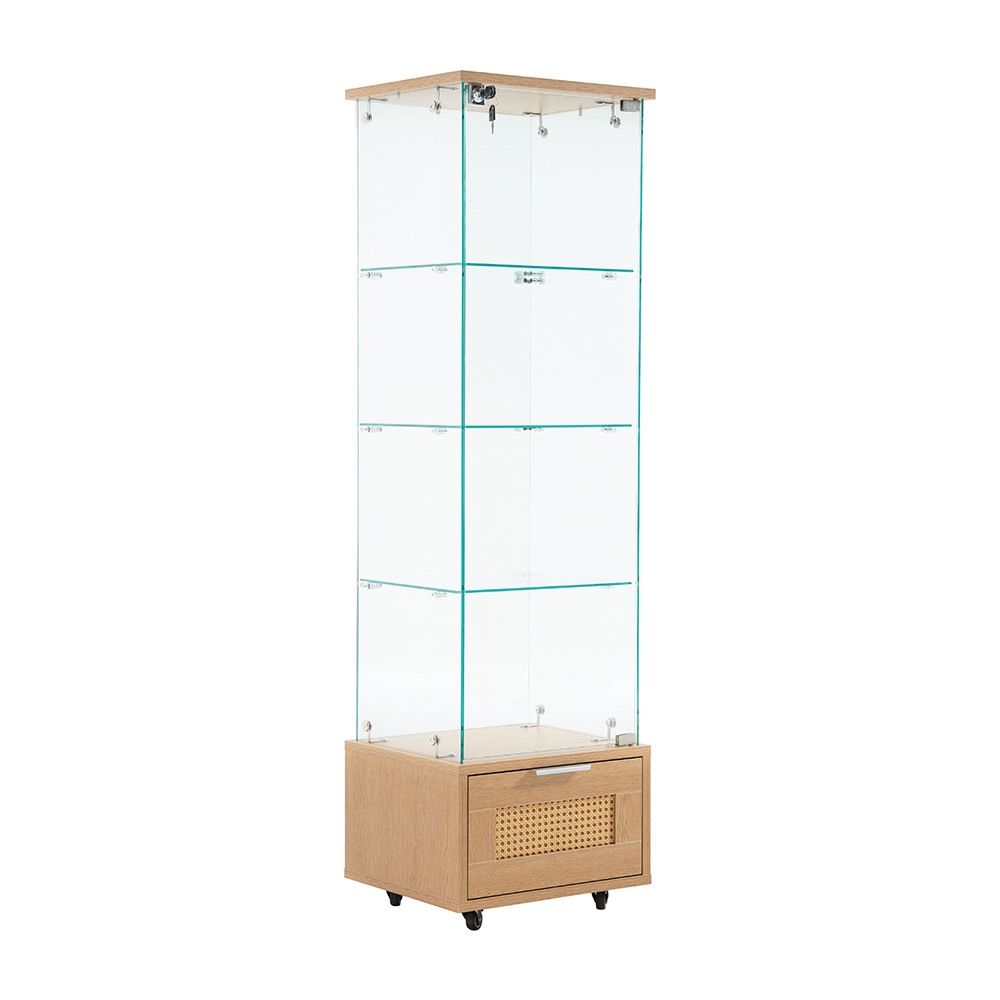 コレクションケース 引き出し付き ガラスディスプレイキャビネット フィギュアケース 4段 強化ガラス 全面ガラス サイズ:幅42.5×奥行36.5×高さ148cm ホワイト