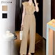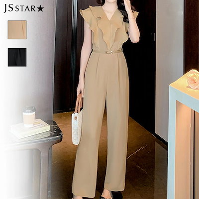 パンツドレス 結婚式 卒業式 同窓会 シフォン パーティードレス フリル オールインワン かっこいい 無地 お呼ばれ フレンチスリーブ 黒 マキシ ロング ガーリー 大きいサイズ おしゃれ きれいめ