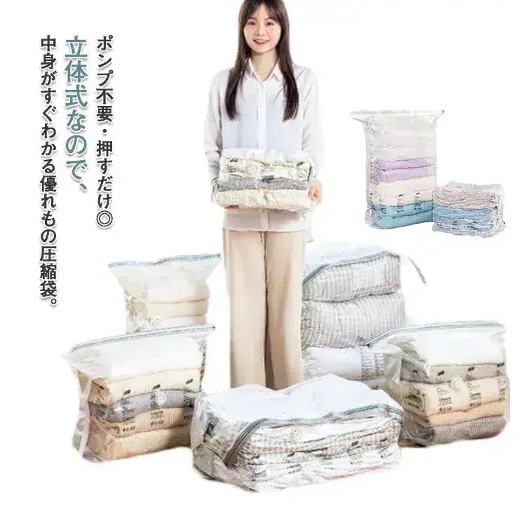 立体圧縮袋 衣類 圧縮袋 2枚入り 衣類 旅行 掃除機不要 立体タイプ 押すだけ 真空圧縮袋 圧縮ボックス 洋服 布団 衣替え 子供服 収納 物 物 収納用品 押し入れ クローゼット整理343