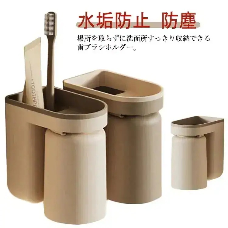 収納 スタンド グレー コップスタンド 壁掛け カップ 歯磨き粉 歯ブラシホルダー 水垢防止 水回り すっきり 歯ブラシたて 洗面所 防塵 衛生 取り付け簡単 吊り下げ お掃除簡単 2個セット91