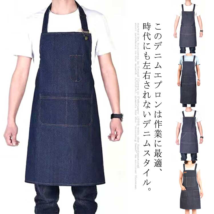 エプロン h型 メンズ レディース デニム ロング 5種タイプ チュニック ポケット 厚手 男女兼用 シンプル 無地 お仕事エプロン 工場 農業 キッチン カフェ 花屋 飲食店 かわ778