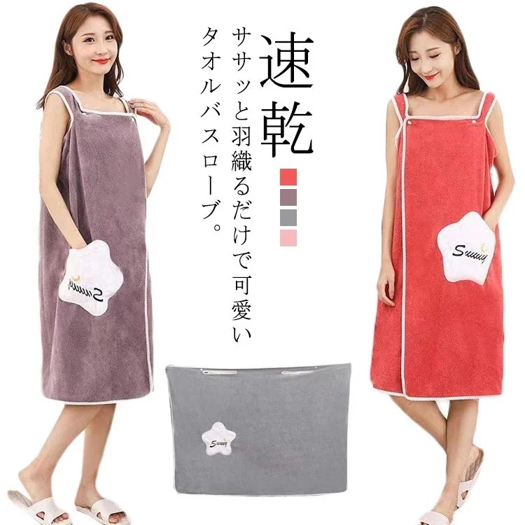 ラップタオル 大判 肩紐 バスタオル バスローブ 着るバスタオル 巻きタオル お泊り 大人用 タオルワンピース 女性 可愛い 吸水 ポケット付き 薄手 軽量 速乾 海水浴 バスタイム 風