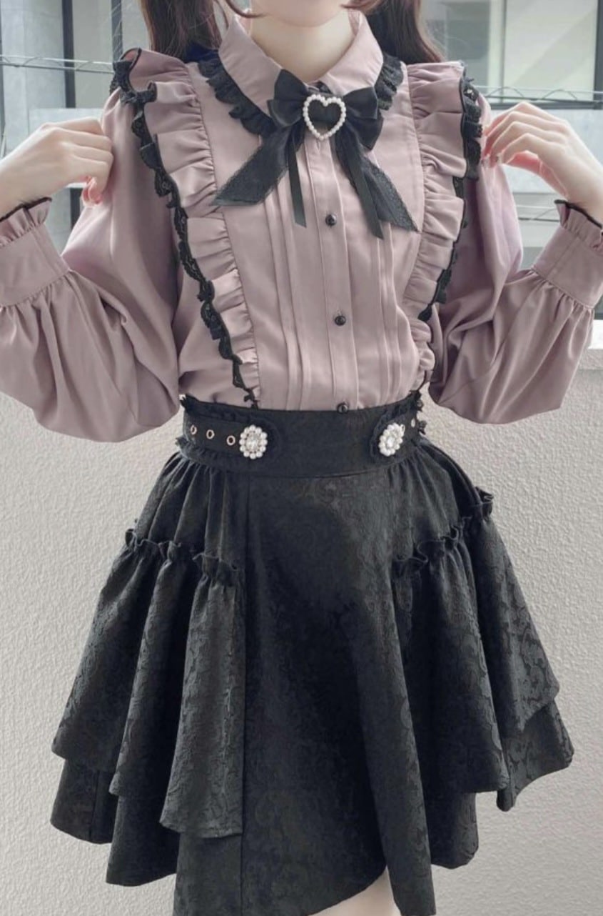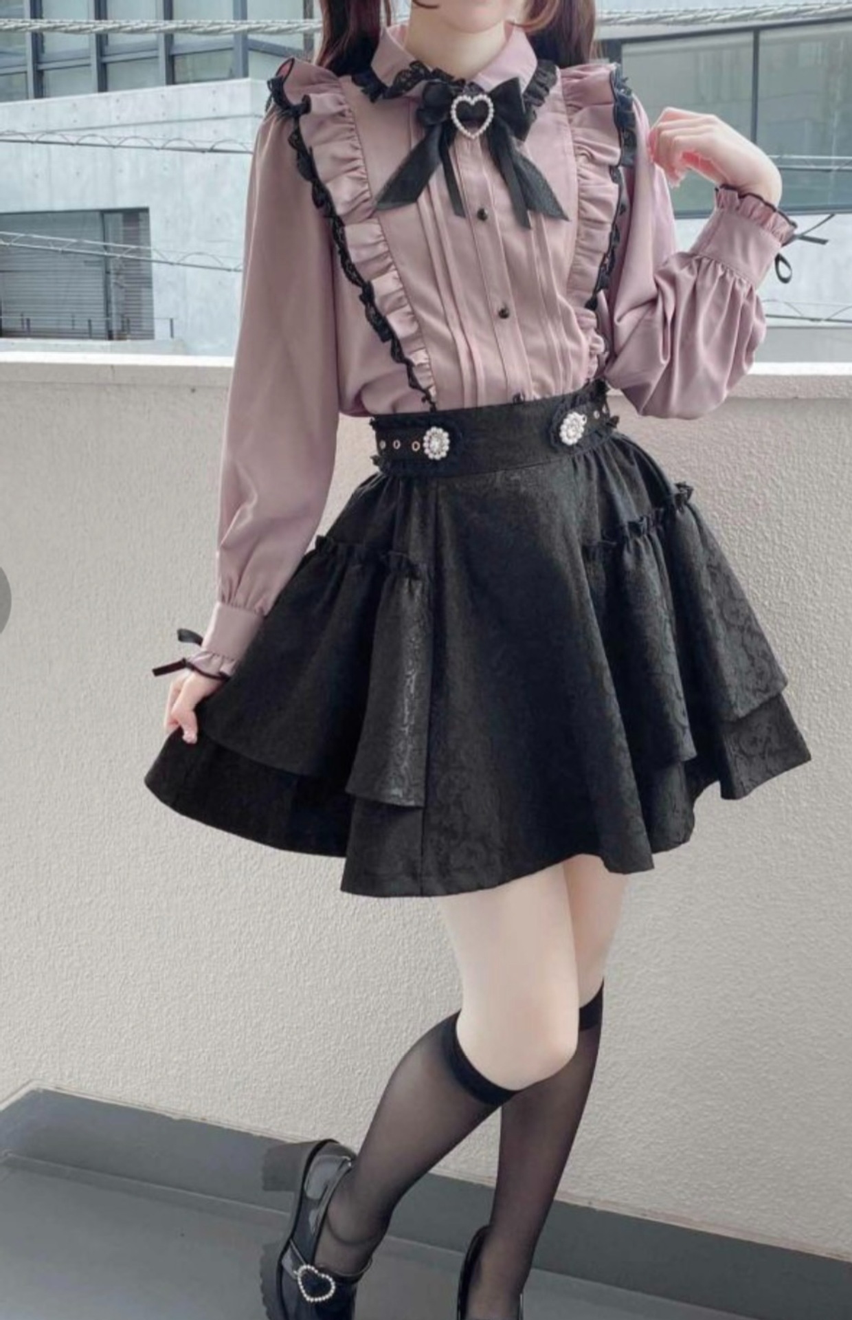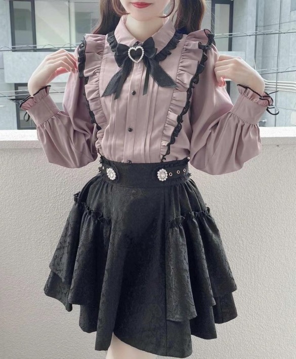 韓国 制服 スカート 日系 カレッジスタイル JK 制服 ハーフスカート 春秋 新作 レディース フリル ドールネック 蝶ネクタイ ネクタイ シャツ トップス ホルタースカート 2点セット