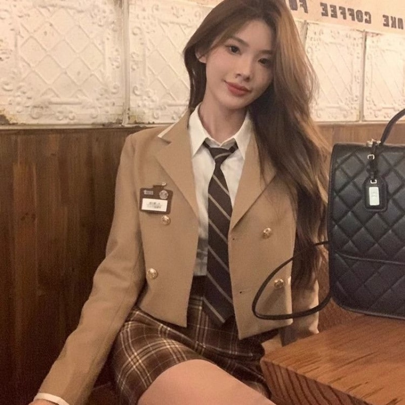 アメリカーナ韓国 制服 スカート アメリカーナ カレッジスタイル スーツ jk ユニフォーム セット オータムドレス ペティート スパイス ユニフォーム ウエスト シャツ ハーフスカート スリーピーススーツ