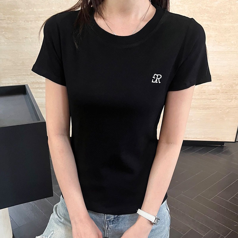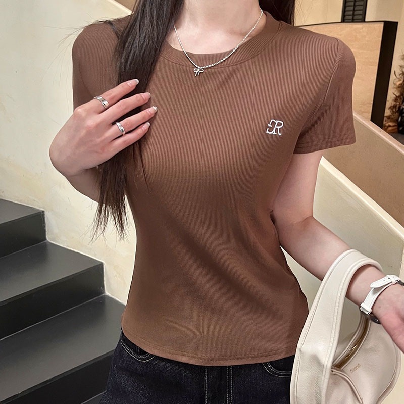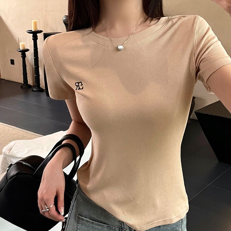 【最安値に挑戦】【人気商品】 Vネック ニット半袖Tシャツガールサマー2025新作刺繍ブラウストップスTシャツボトム