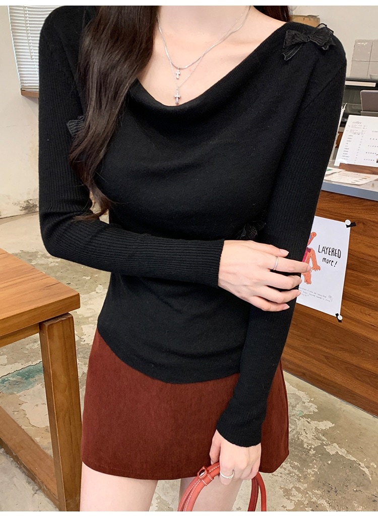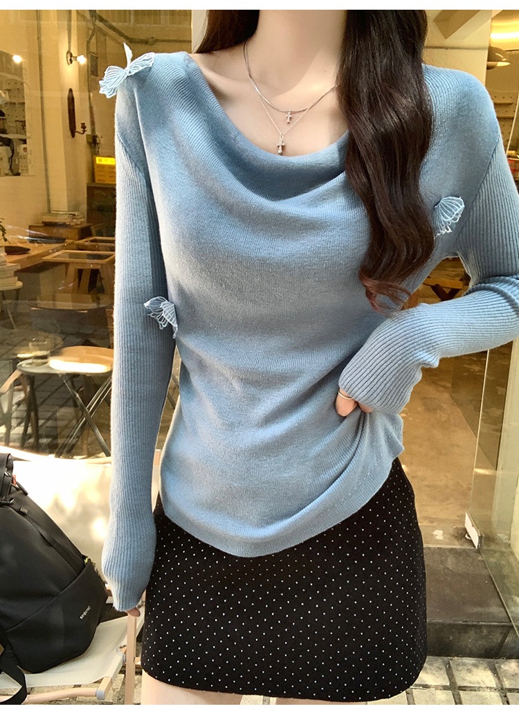 【最安値に挑戦】【人気商品】 Vネック ニット純欲風立体蝶のシャツ女性の早い秋のインナーにボトムを合わせたシックな長袖ニットの上着