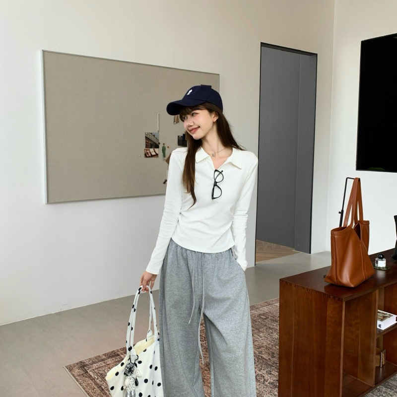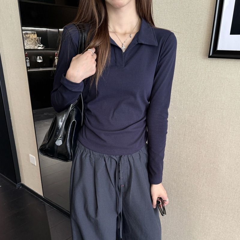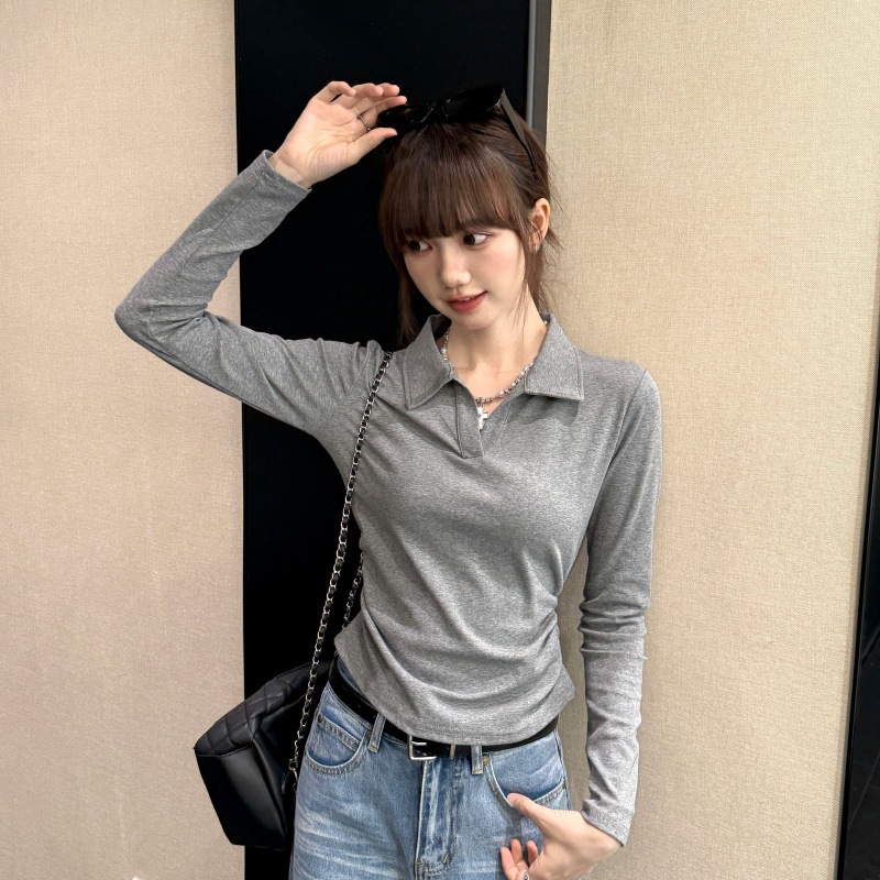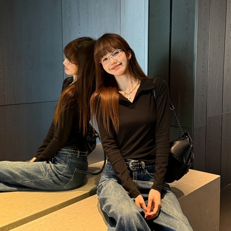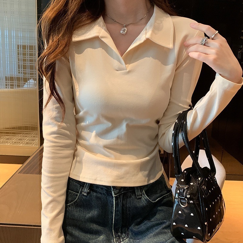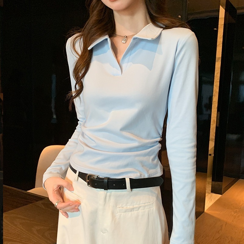 【最安値に挑戦】【人気商品】 Vネック ニット白ポロシャツ女Tシャツ女2025新型ウエスト収納早秋トップス長袖秋