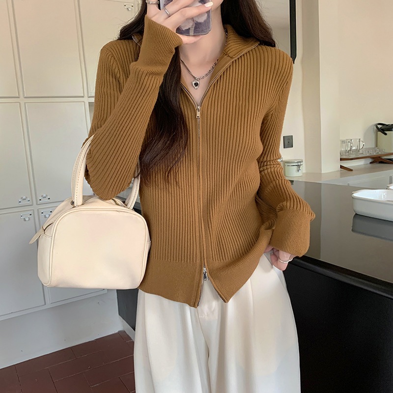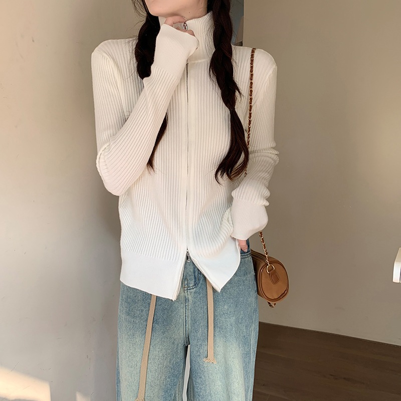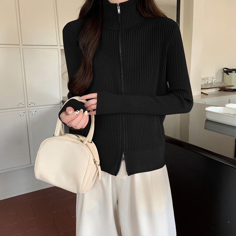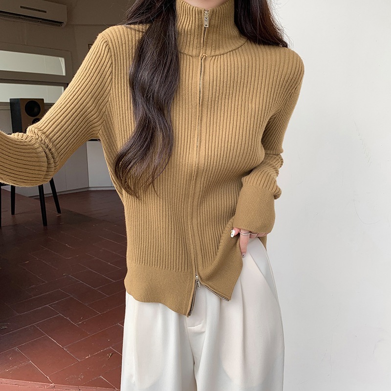 【最安値に挑戦】【人気商品】 Vネック ニットシンプルな純色長袖ニット2025新型ハイネック長袖トップスファスナーデザインニットカーディガン