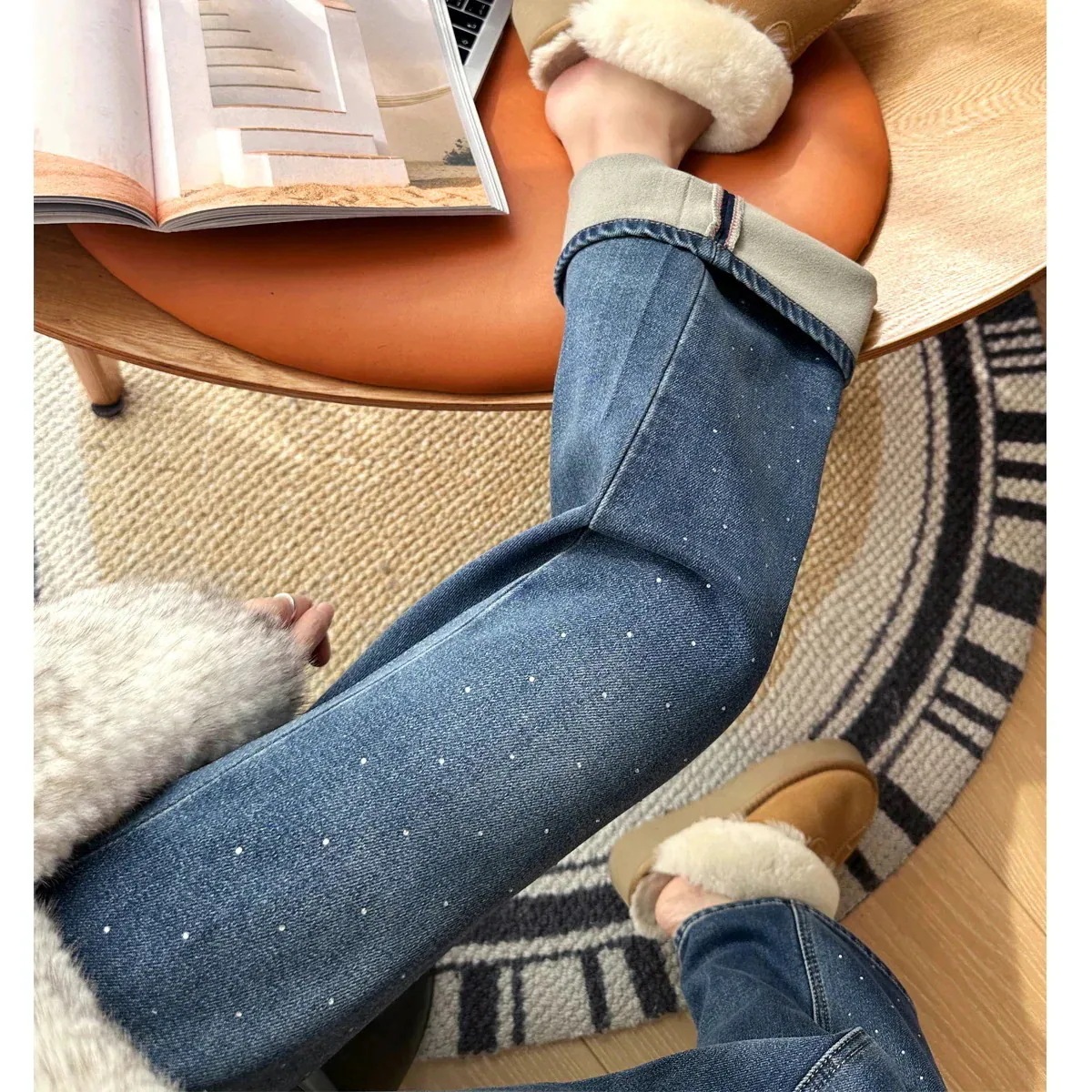 【最安値に挑戦】【人気商品】2025 秋冬新作ワイドパンツ 裏起毛 レディース スパンコール 裏起毛デニム ナローワイドレッグ ルーズフィット 超キレイデザイン 裏起毛パンツ ワイドパンツ レディース