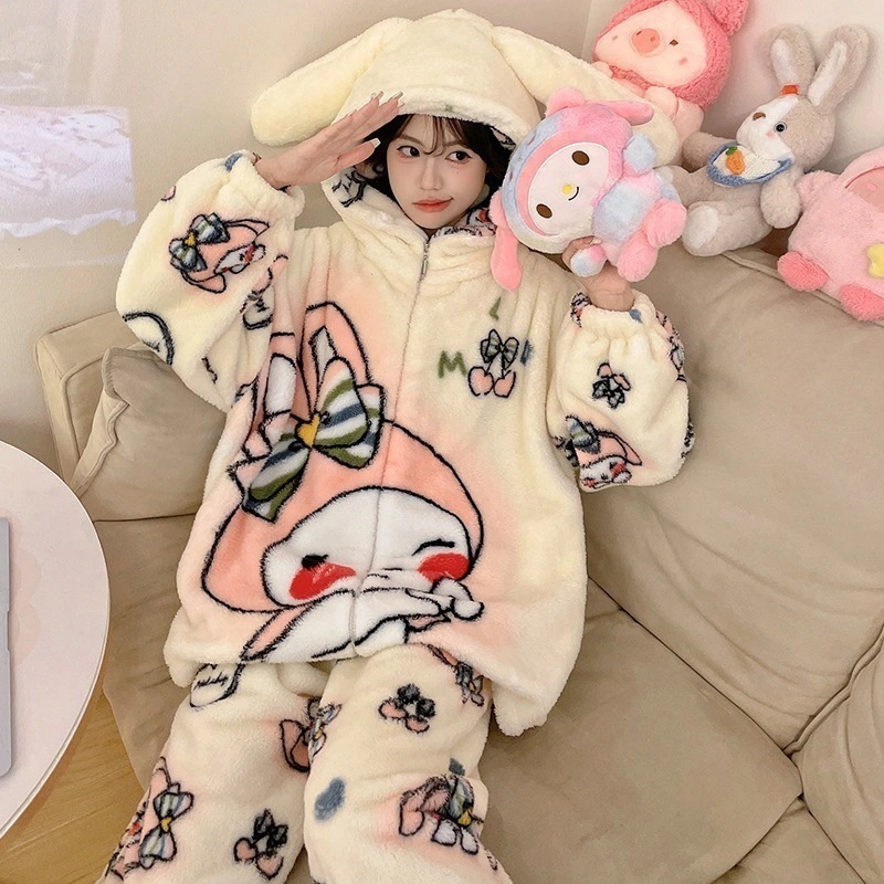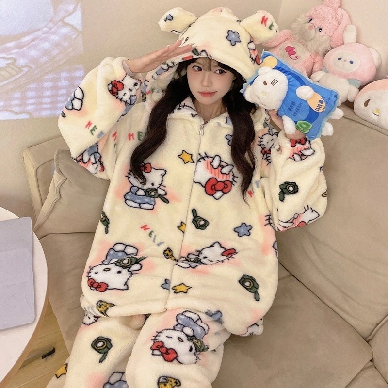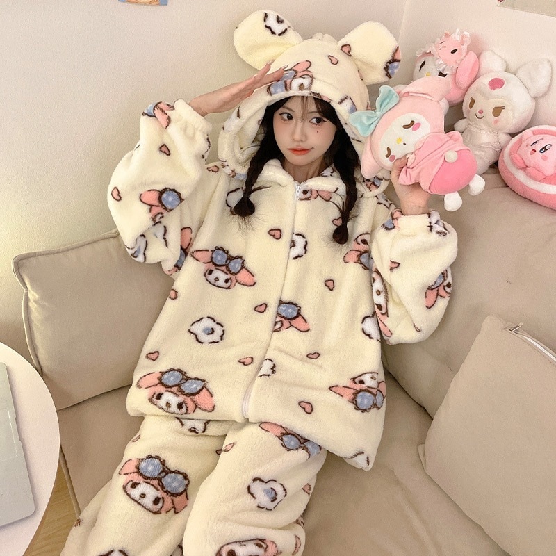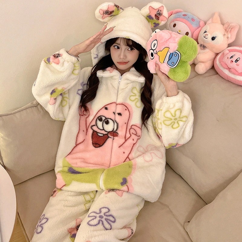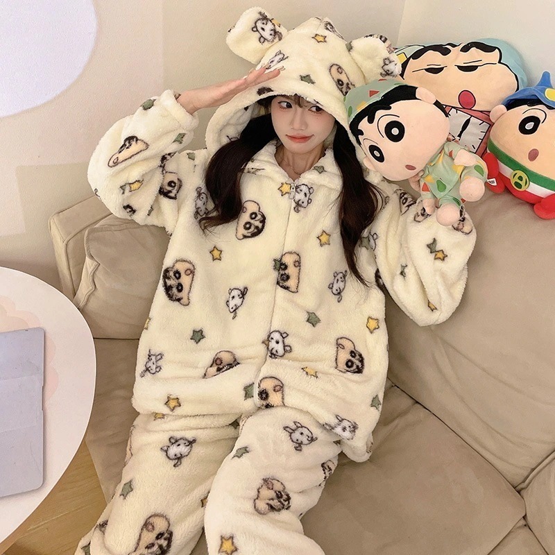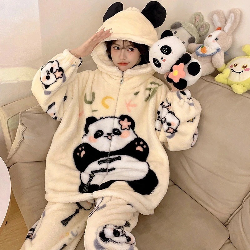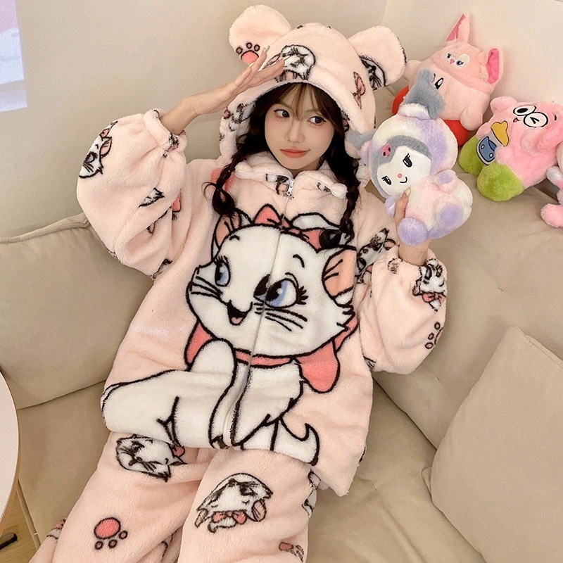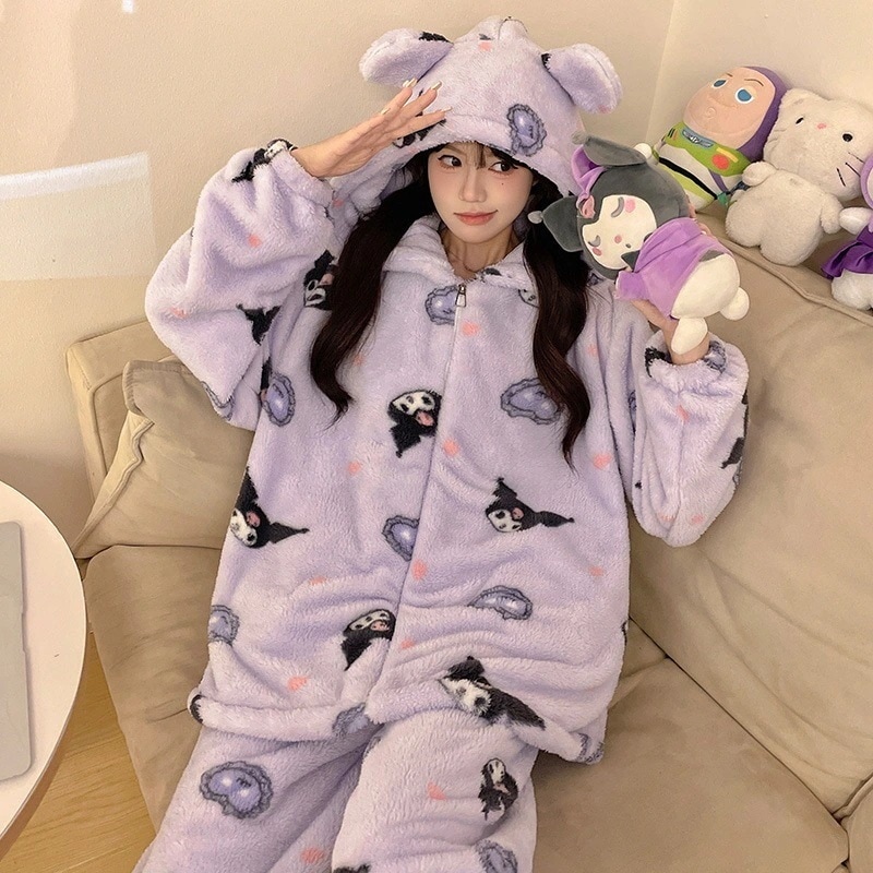 【最安値に挑戦】【人気商品】【急速出荷】2025 ルームウェア 秋冬 新作 レディースパジャマ フランネル 厚手 漫画 ホーム フード付き ジップ 冬 セット