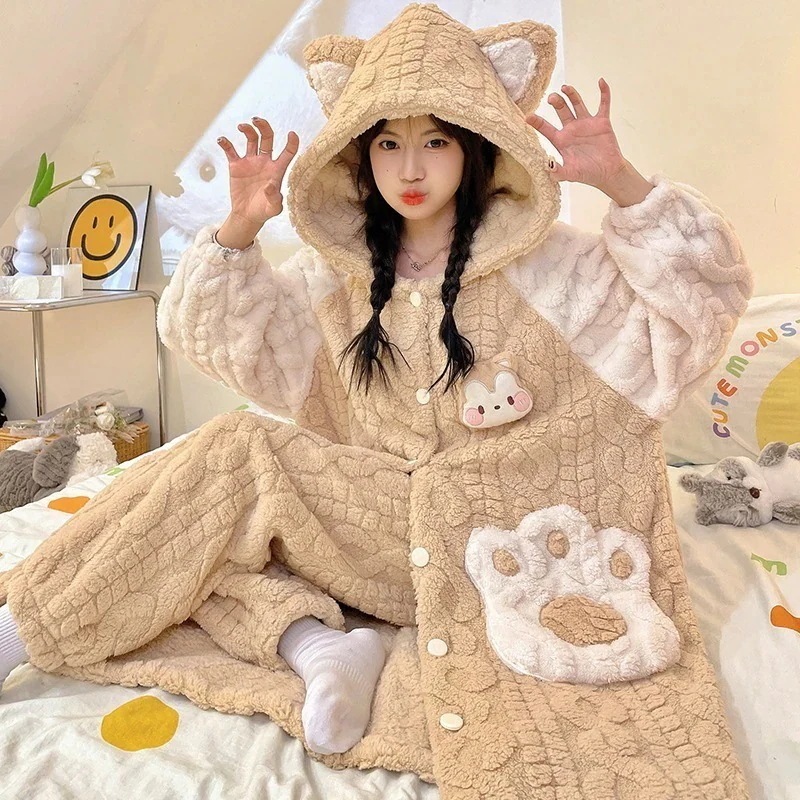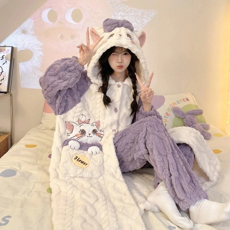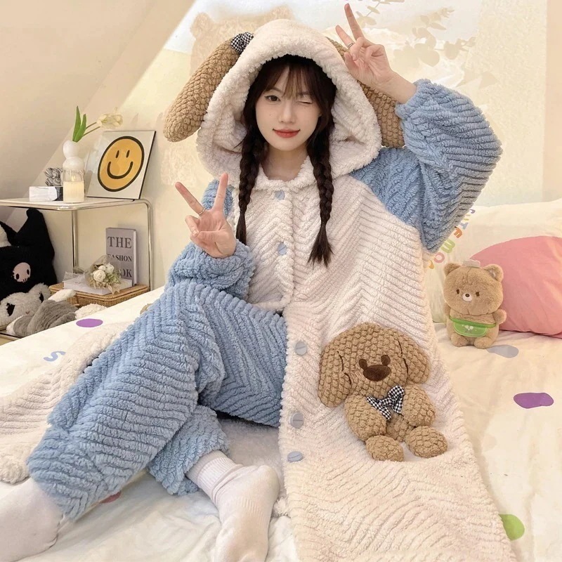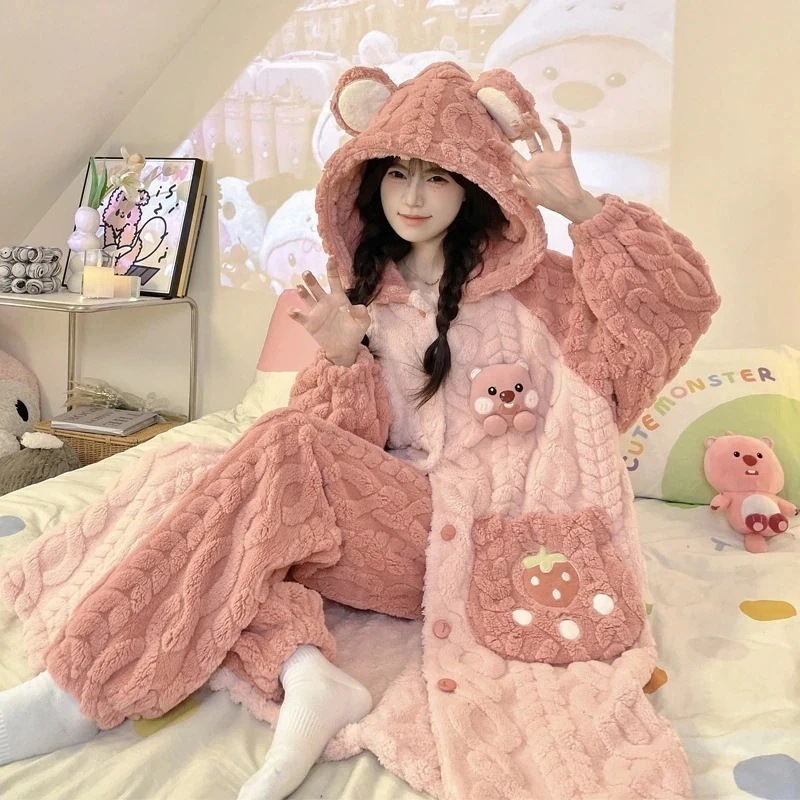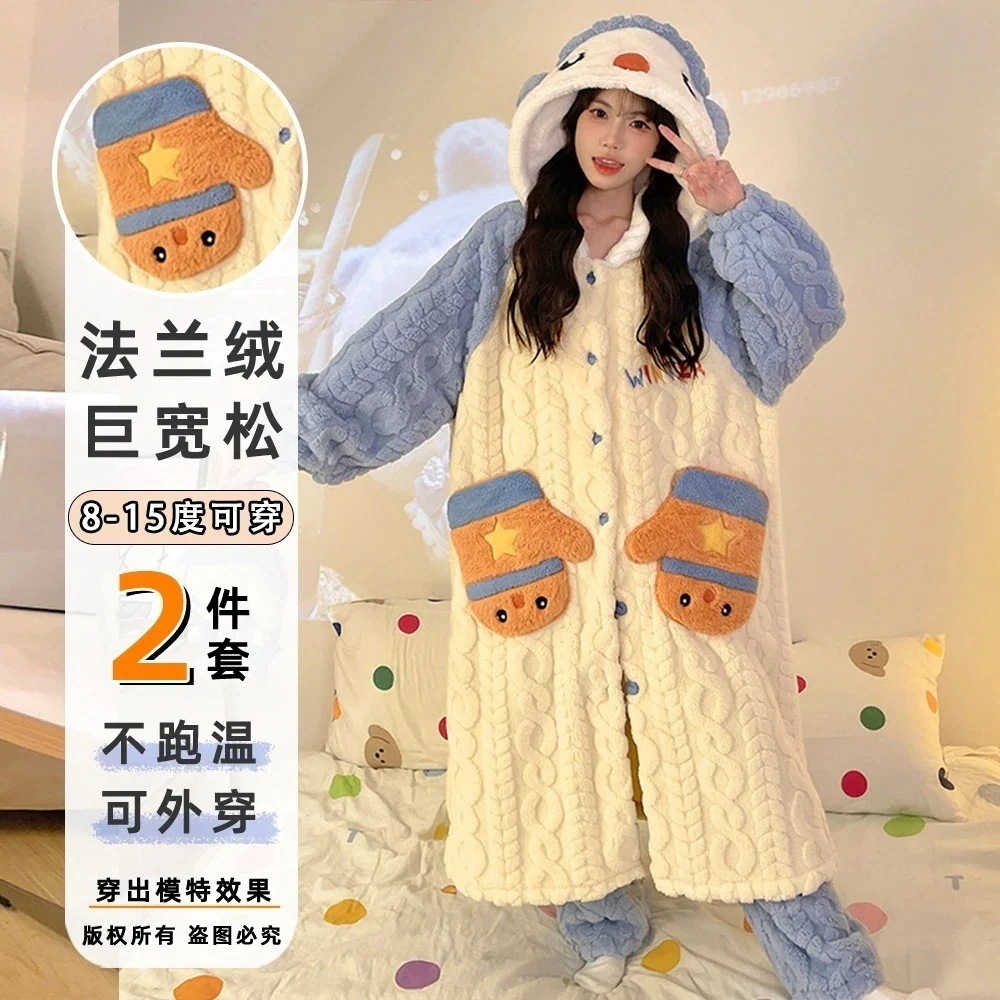 【最安値に挑戦】【人気商品】【急速出荷】パジャマ 新作 20スタイル 珊瑚ベルベット 2点セットローブ+パンツ 寝巻き レディース 冬 厚手 新作 かわいい フランネル ホームウェア