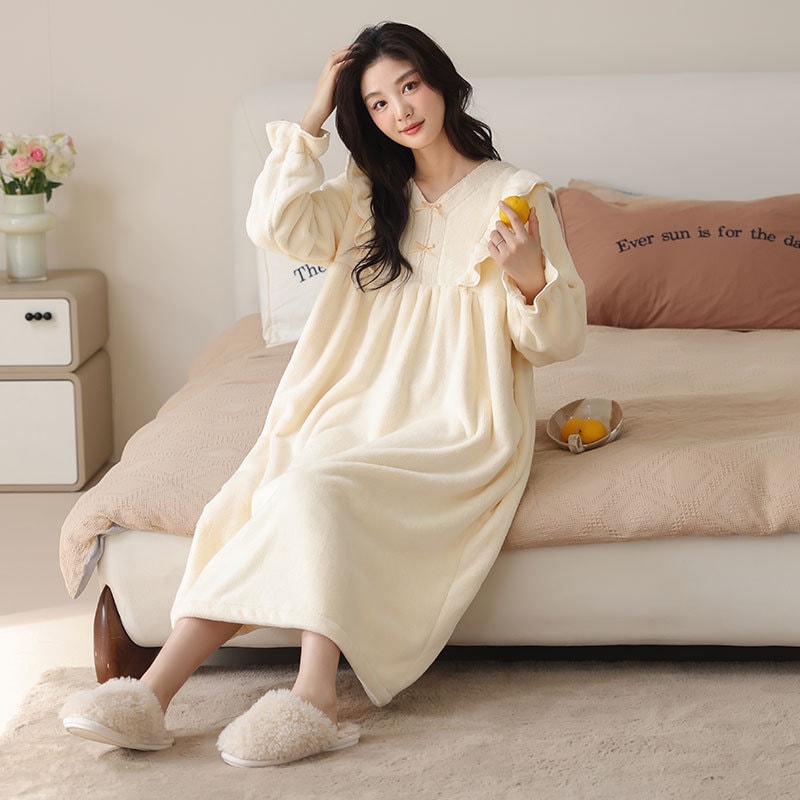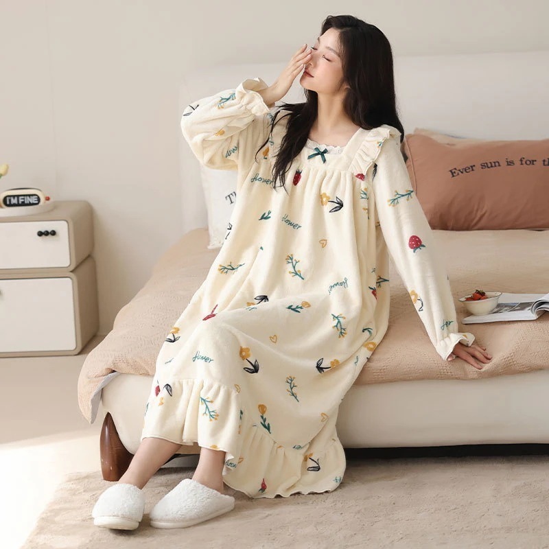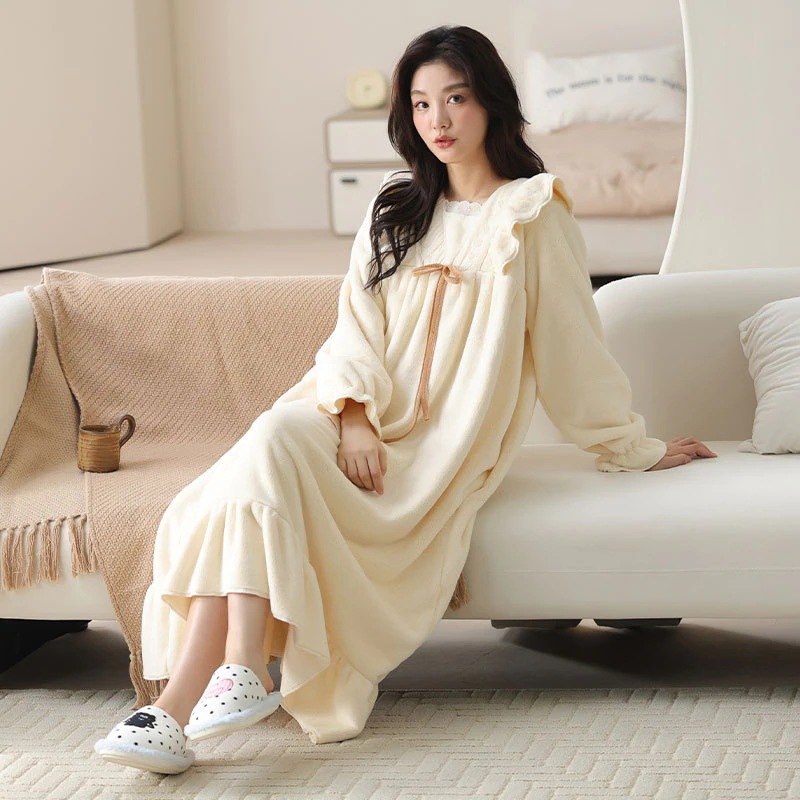 【最安値に挑戦】【人気商品】【急速出荷】ルームウェア秋冬新作 レディース フランネル 厚手 スウィート パジャマ ロング ホームウェア アウター 暖かい 寝間着