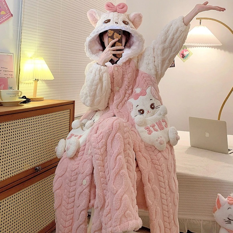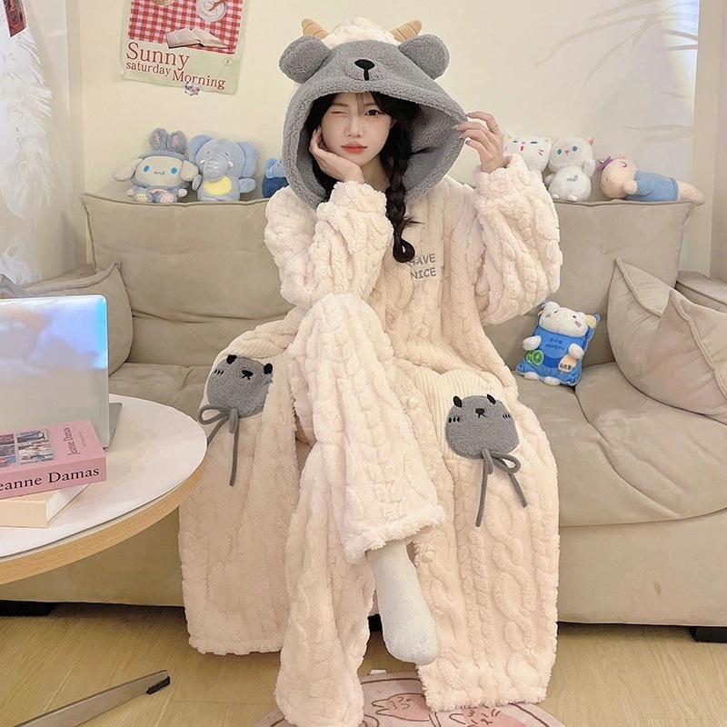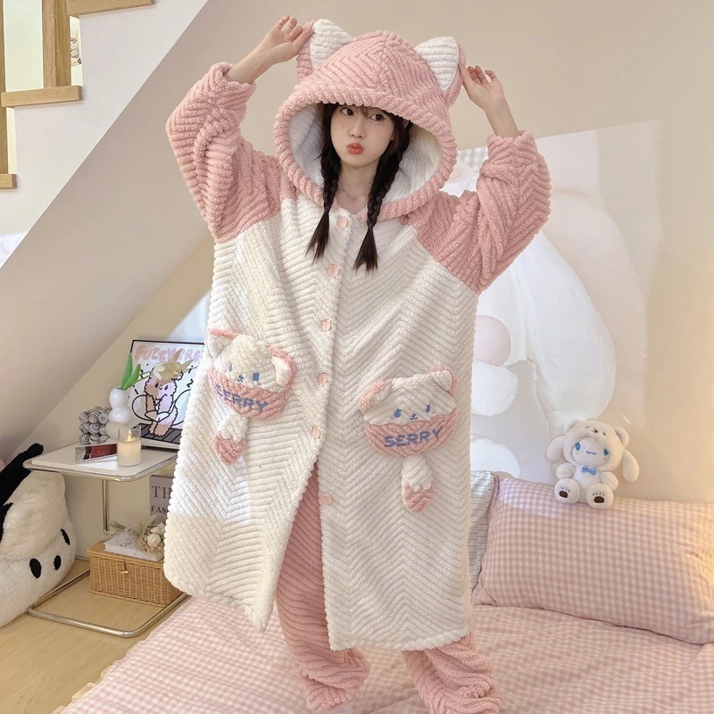 【最安値に挑戦】【人気商品】【急速出荷】ルームウェア秋冬新作 2025 新作 レディース パジャマ 秋冬 コーラルフリース 厚手 裏起毛 バスローブ ナイトガウン モーニングガウン レディース用 セッ
