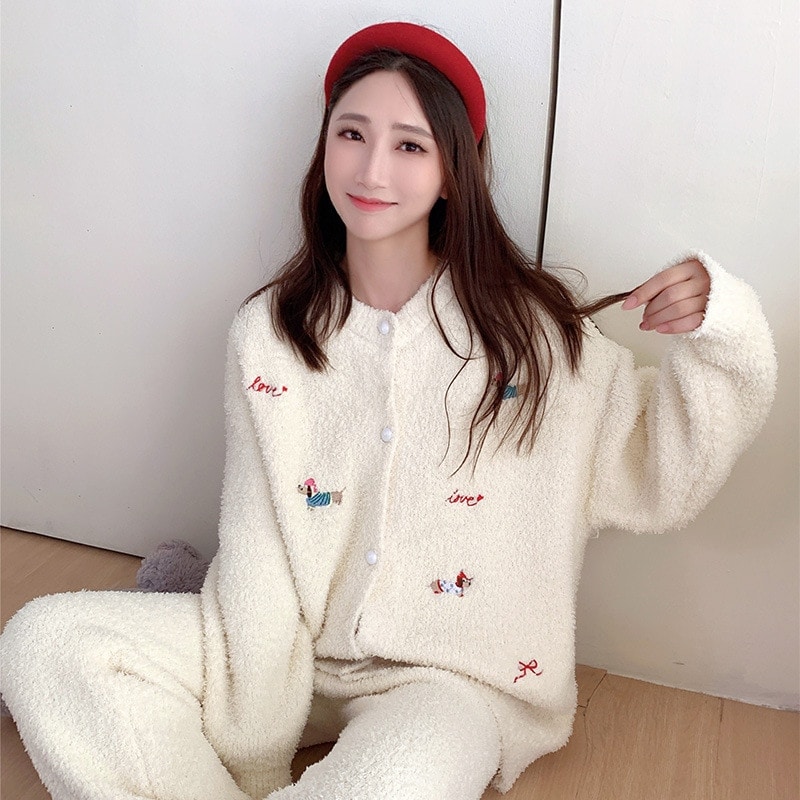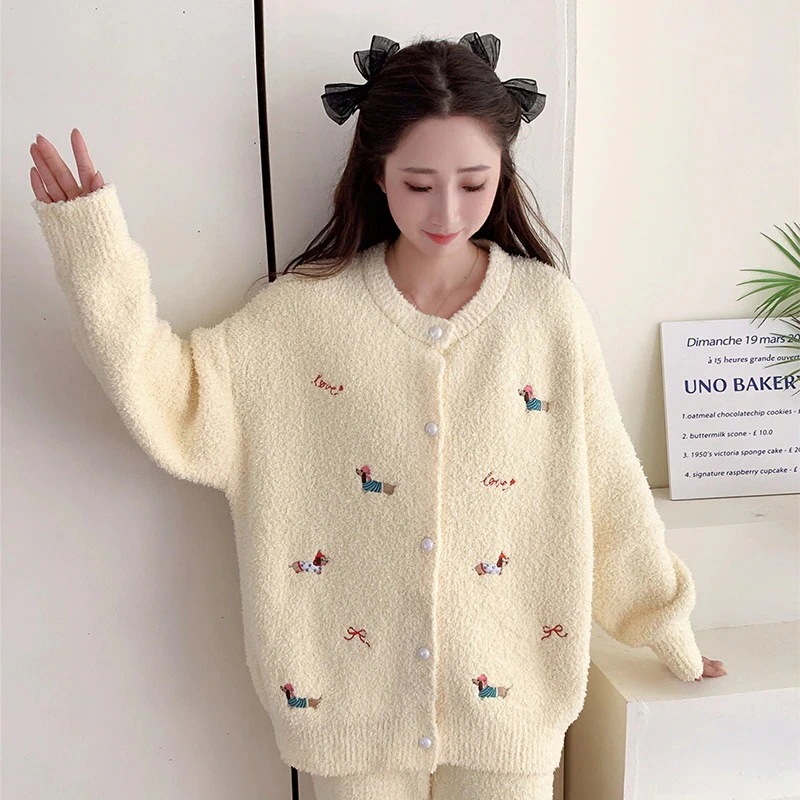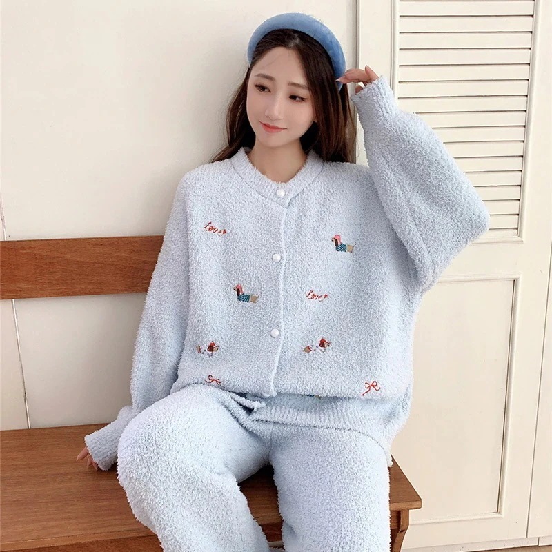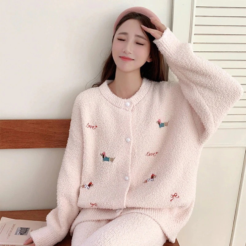 【最安値に挑戦】【人気商品】【急速出荷】ルームウェア秋冬新作 ハーフフリース パジャマ レディース ツーピース 漫画 かわいい 厚手 暖かい ホームウェア セット
