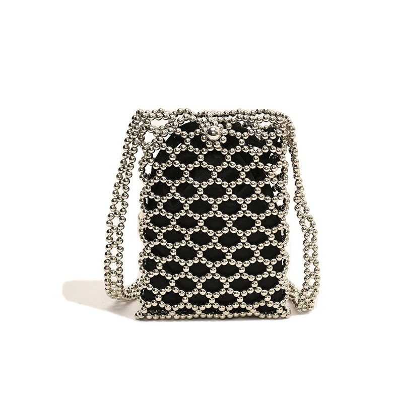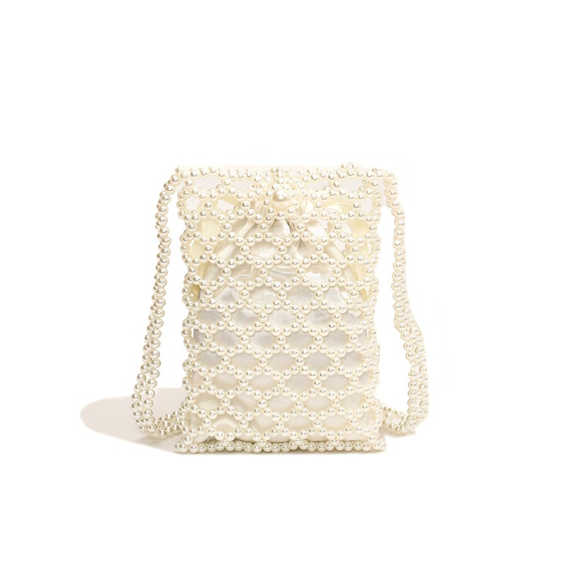 【最安値に挑戦】【人気商品】韓国語バージョン ファッション 縦型モデル スクエア ショルダーバッグ 2025 新作 ファッショナブル ダイヤ格子 スケルトン イミテーション・パール クロスボディ財布