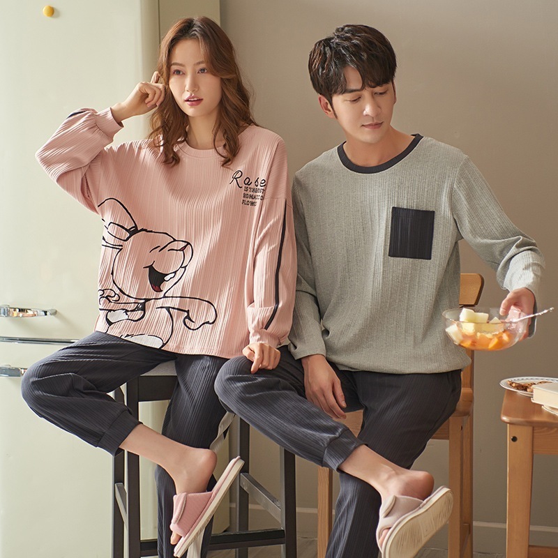 【最安値に挑戦】【人気商品】韓風デザイン カートゥーン柄可愛いウォッフル生地 長袖ルーズ版型肌に優しい 通気性良いホームウェア・宅配・買い物着用プラスサイズ対応 洗濯耐久性レディース・メンズお揃い リ