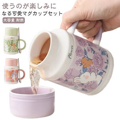 フタ付き マグカップ 大きい 陶器 大容量 スプーン付き 可愛い 食器 ウサギ柄 コーヒーカップ 茶碗 磁器 キッチングッズ 雑貨 兎 かわいい おし