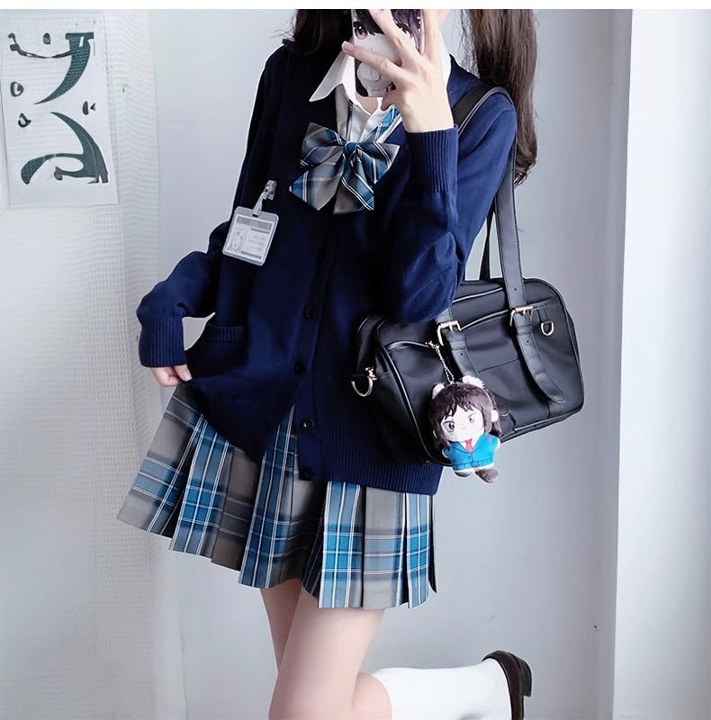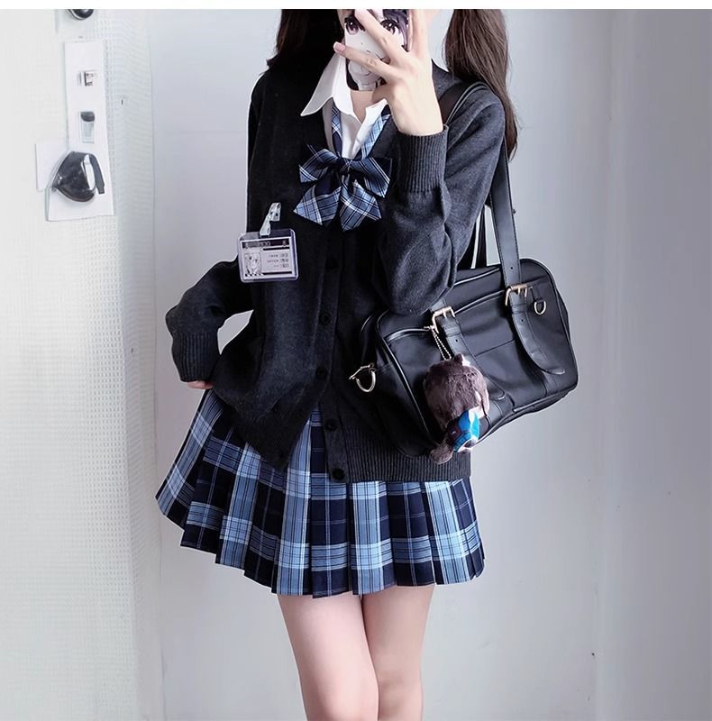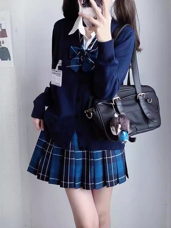 韓国 制服 スカート オリジナル 正規品 JK 制服 秋冬 学生服 長袖 セーター 制服 カーディガン 格子柄スカート シャツ レディース 日系 カレッジスタイル セット
