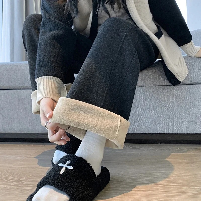 【最安値に挑戦】【人気商品】 レディース ハイウエスト ナローワイドパンツ 厚手フリース垂れ感あり ルーズ だらけた雰囲気モチモチ生地 シェイプアップ ロングパンツ