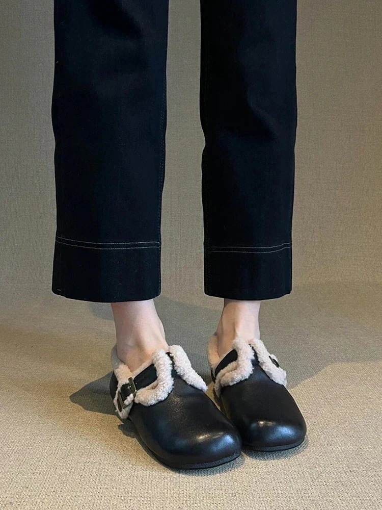 【最安値に挑戦】【人気商品】レトロ雰囲気 ボーケンマフラーシューズ 黒色 フリース入り 女性用マリージェーン