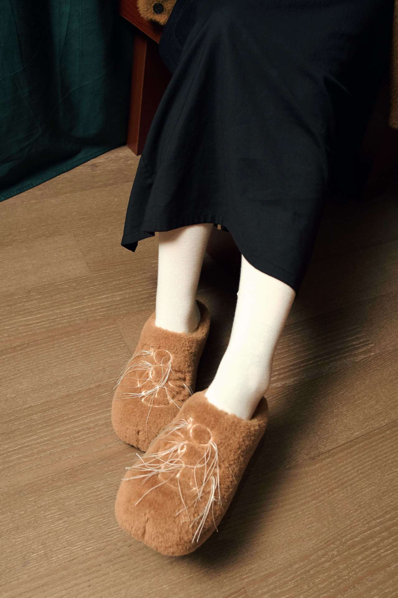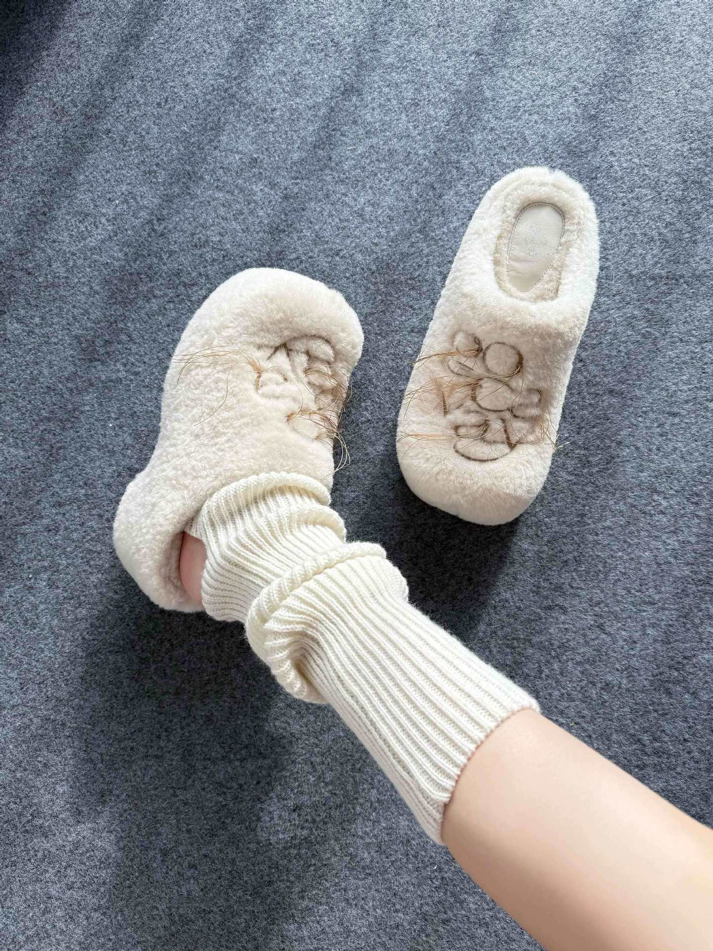 【最安値に挑戦】【人気商品】2026 秋冬 レディース クラウド感 毛糸刺繍 厚底 モカシンハーフスリッパフリース入り 保温 毛付きカジュアル 防滑 ウールシューズ