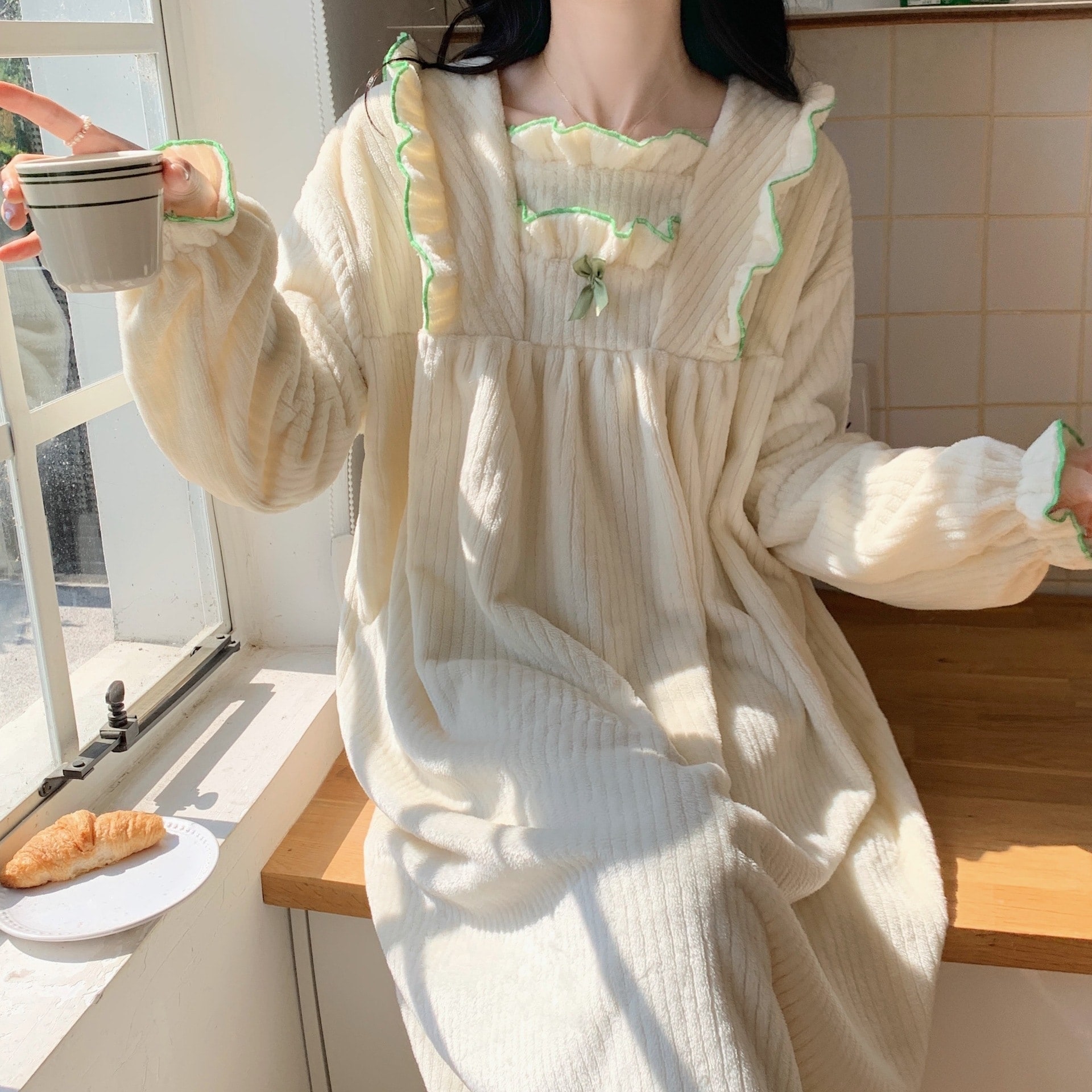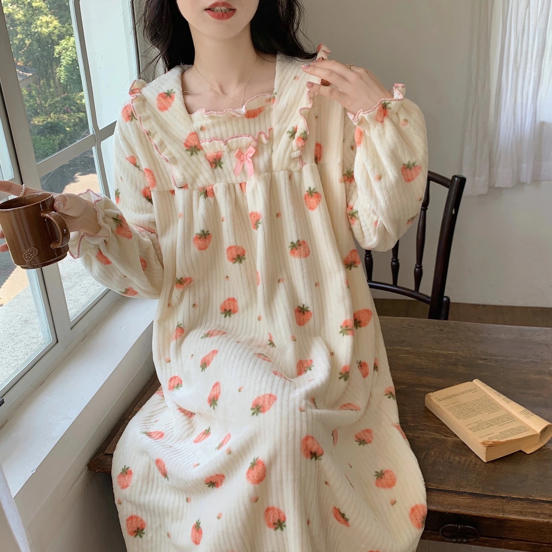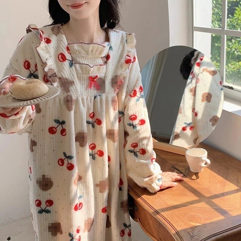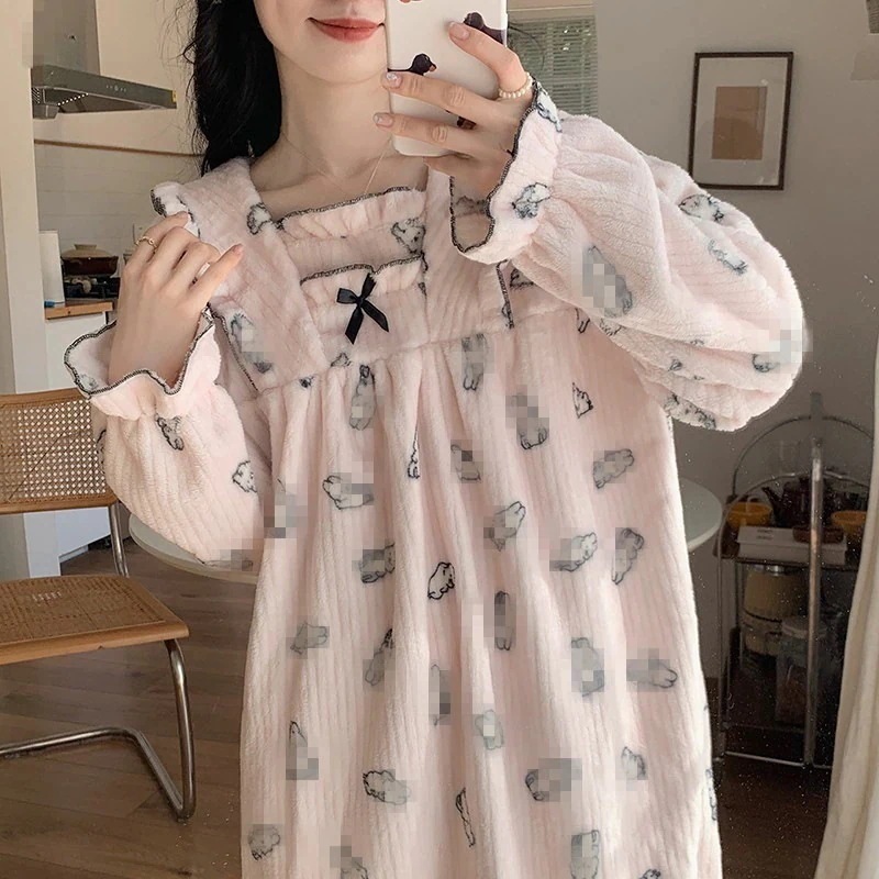 【最安値に挑戦】【人気商品】 【 迅速な出荷 】二点セット フランネル 秋冬 ネグリジェ キュート 裏起毛 厚手 ゆったり もこもこ あったかルームウェア 寝間着 部屋着