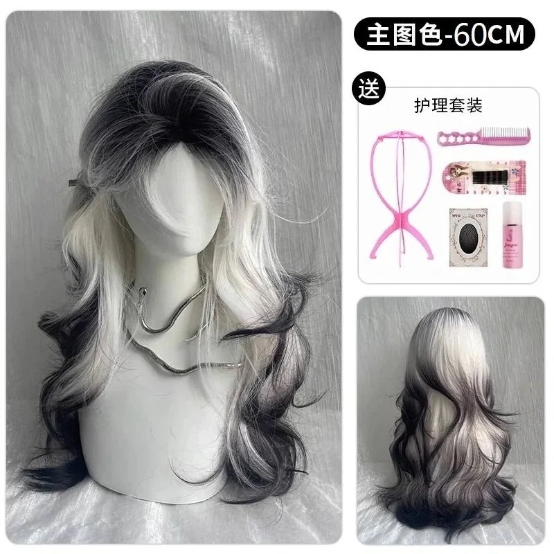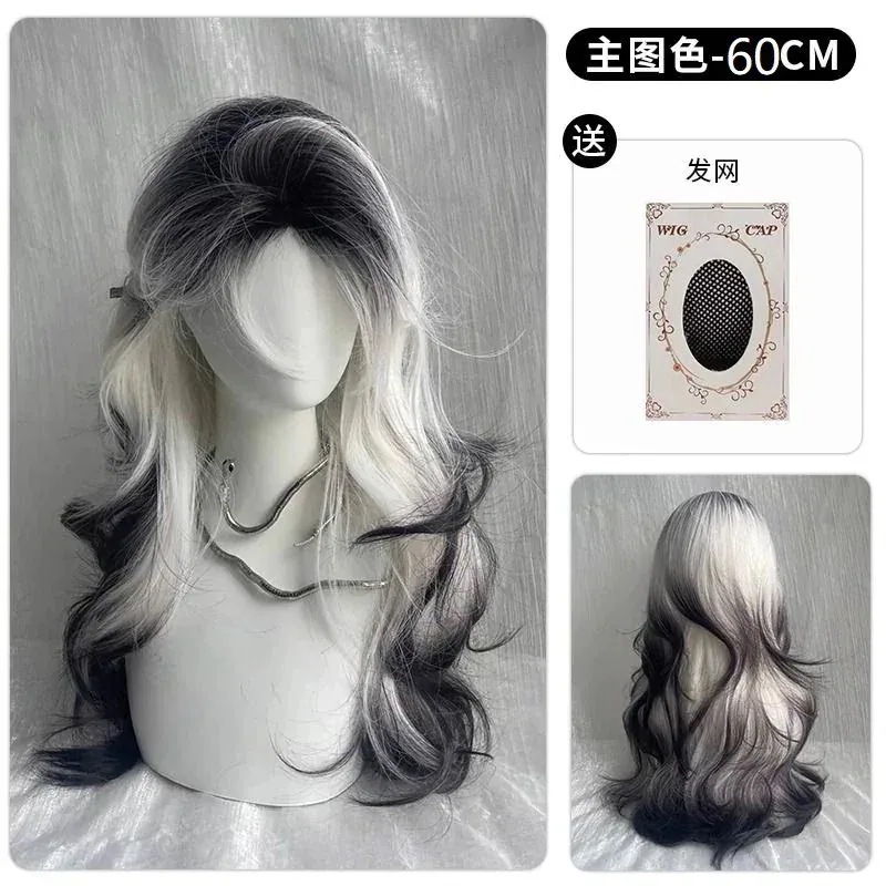 【最安値に挑戦】【人気商品】【人気ベストセラー】黒白グラデーション シャムネコ柄ウィッグ レディースロングヘア フルウィッグ パリアメ センターパート 八字ロングウェーブ ファッションの最先端をいく高