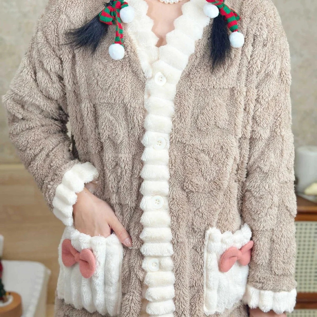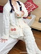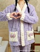 【最安値に挑戦】【人気商品】ルームウェア秋冬新作 コーラルフリース パジャマ 中綿入り・厚手 ラブハート ジャカード セット レディース リボン 厚手 コーラルフリース