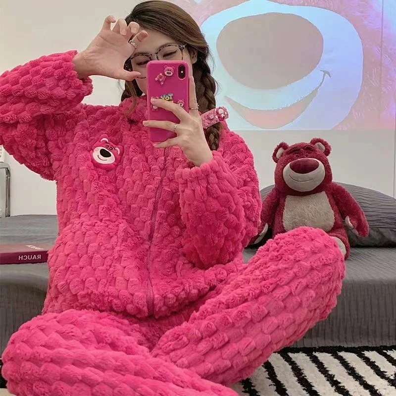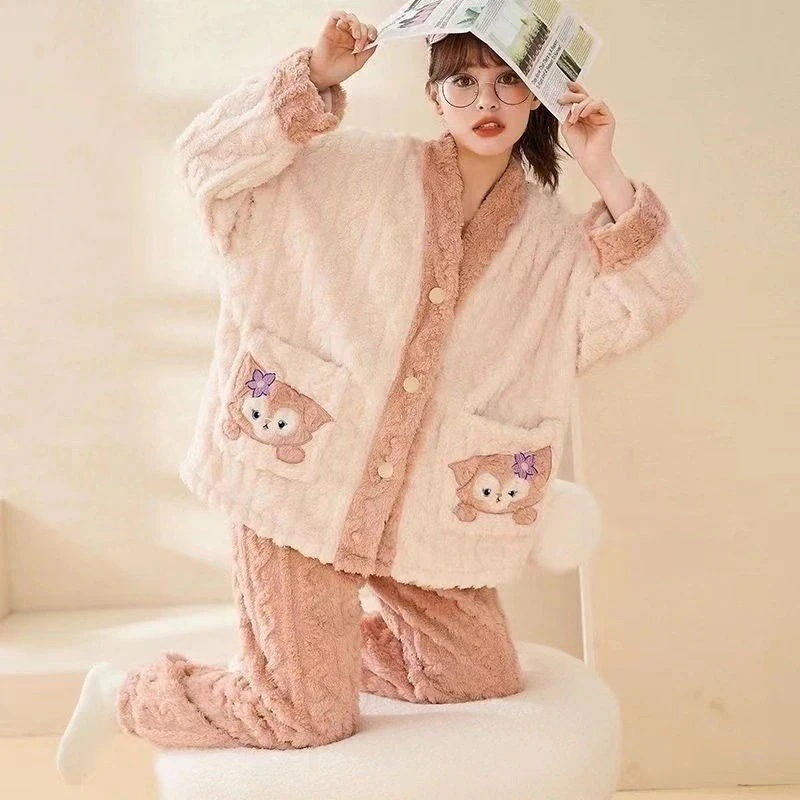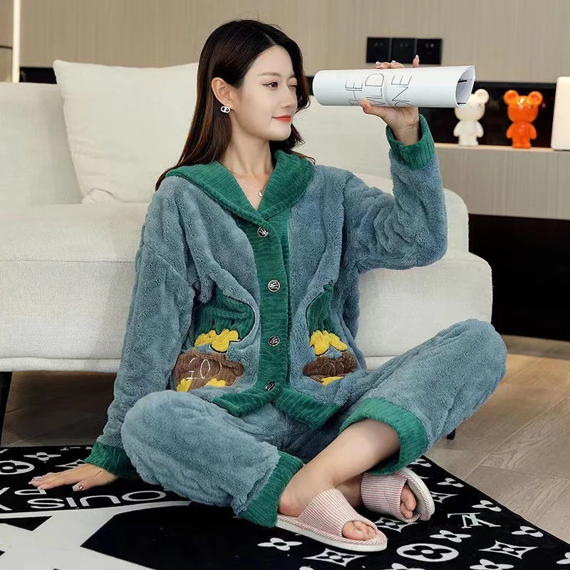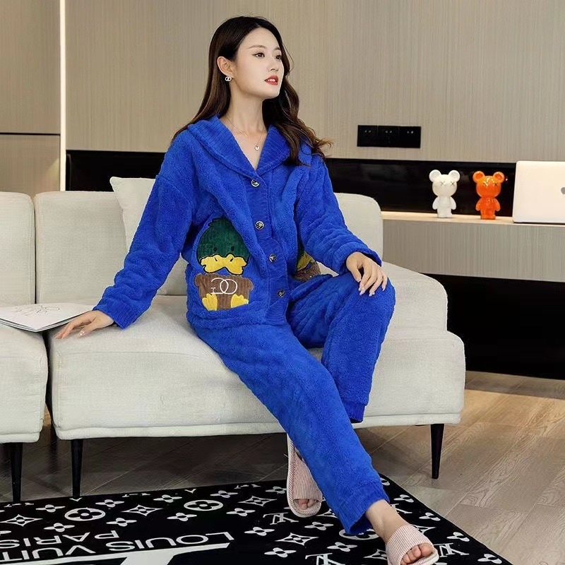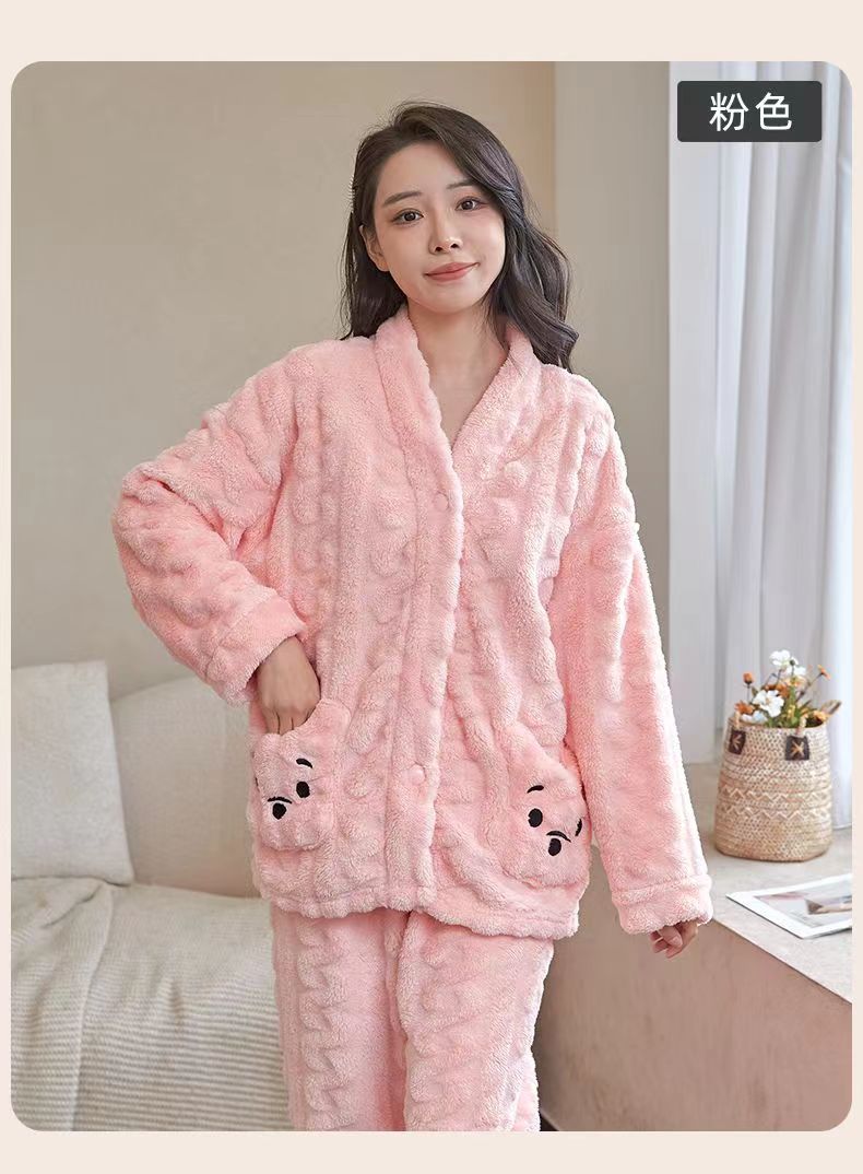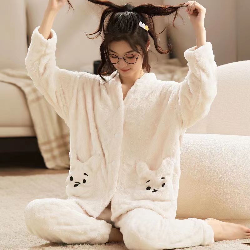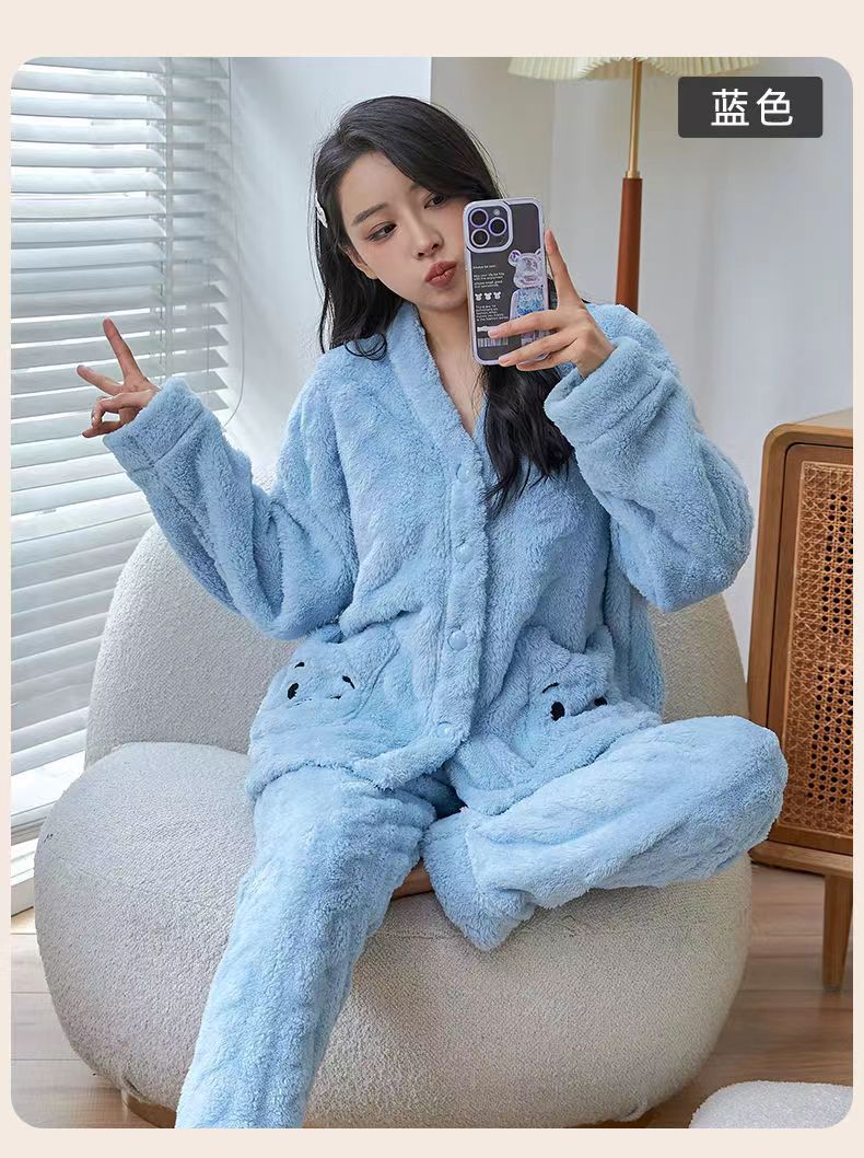 【最安値に挑戦】【人気商品】コーラルベルベット パジャマ Vネックモデル ホームウェア スーツ 外でも着られる ぬいぐるみ 暖かい パジャマセット ルームウェア秋冬新作