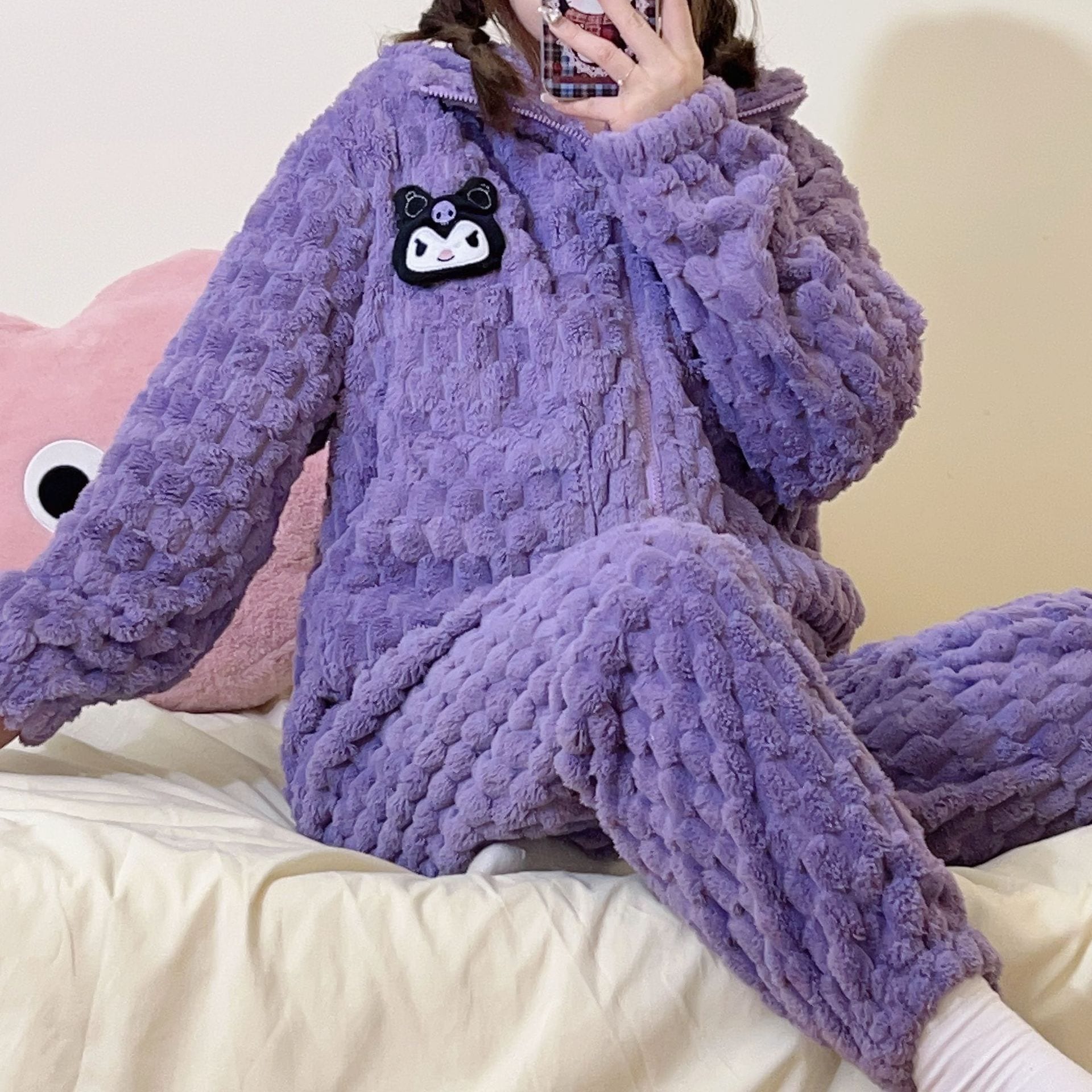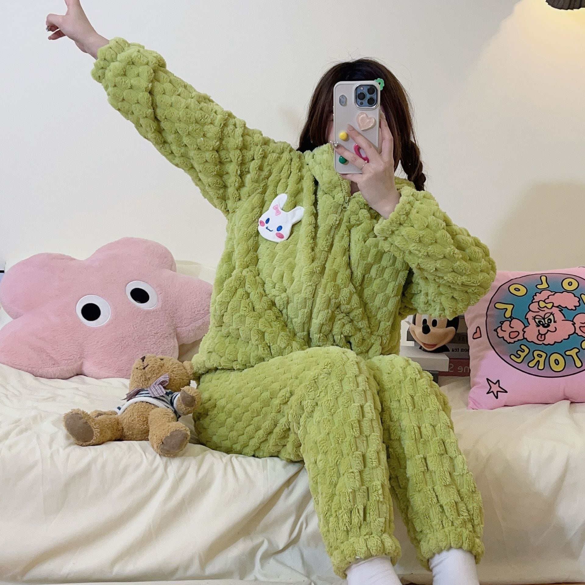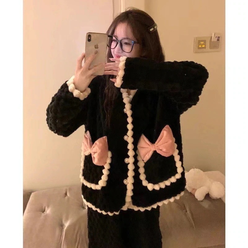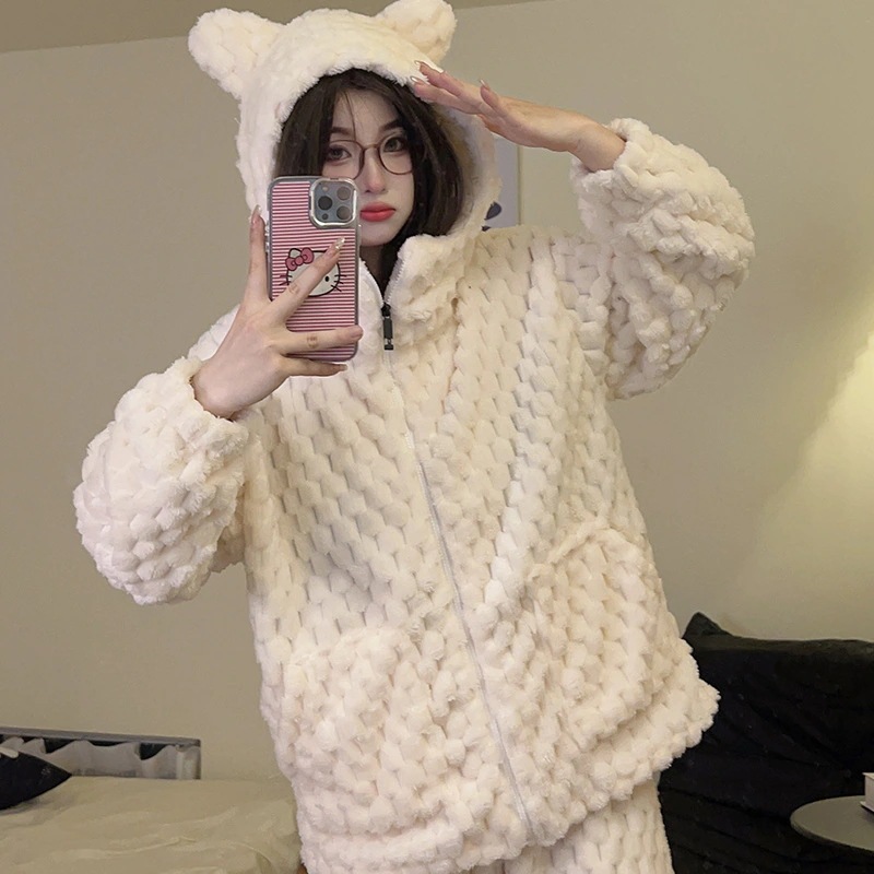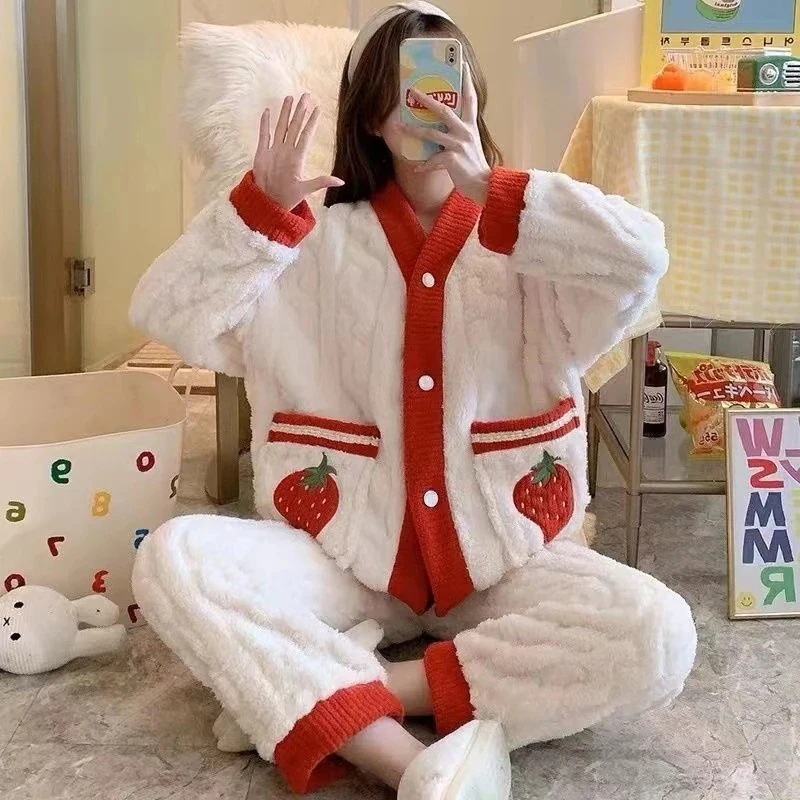 【最安値に挑戦】【人気商品】コーラルベルベット パジャマ Vネックモデル ホームウェア スーツ 外でも着られる ぬいぐるみ 暖かい パジャマセット ルームウェア秋冬新作