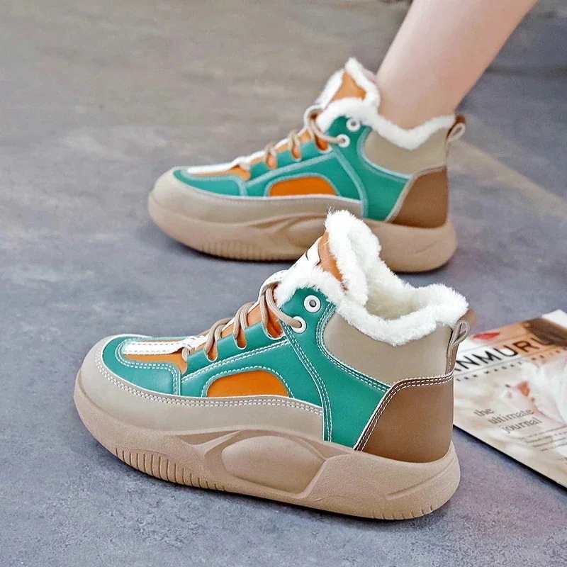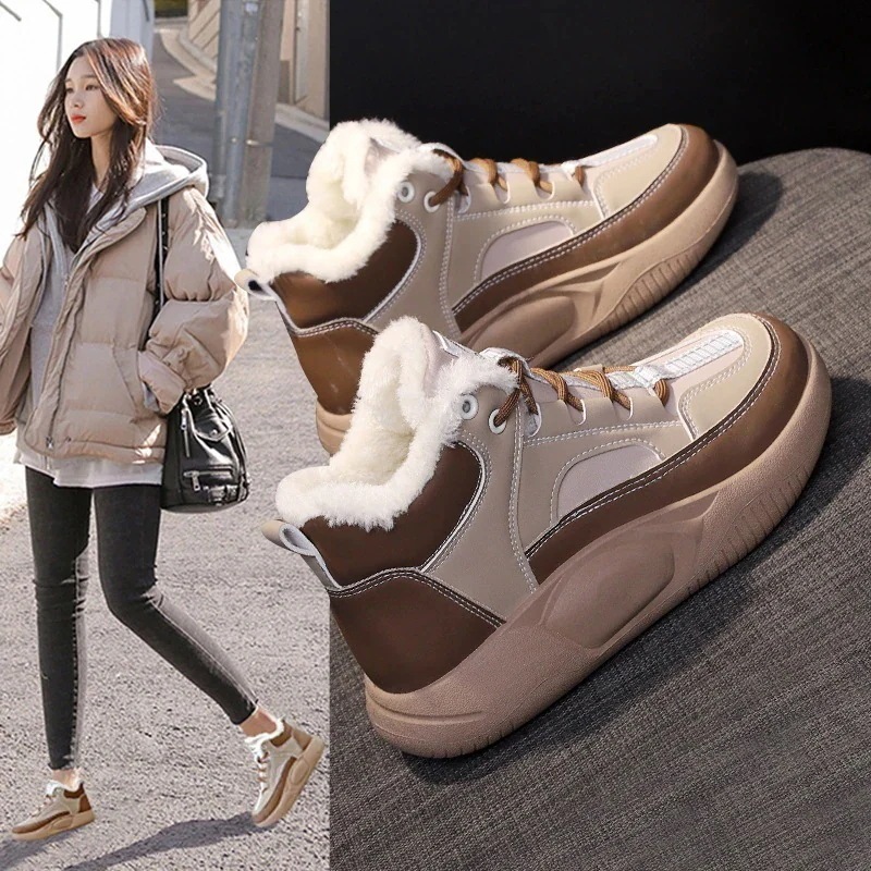 パッド入りハイトップの雪のブーツの韓国語バージョン 学生カジュアル厚い暖かい綿の靴女性