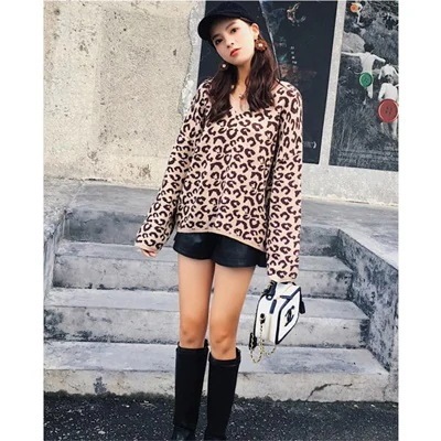 緊急SALE 大きいサイズの婦人服 マイクロ脂肪mm セーター Vネック ヒョウ 外国のガス ゆるい スリム 減齢 プルオーバー セーター