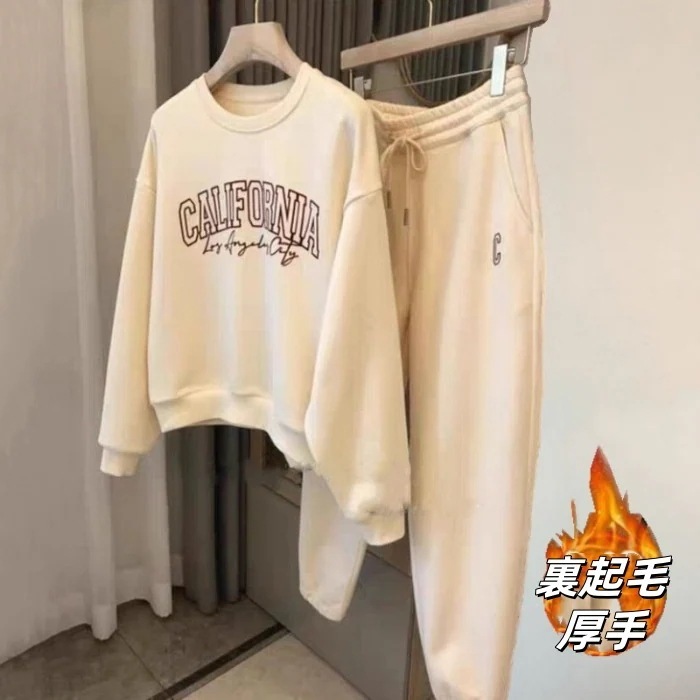24新作 シンプル スウエット 裏起毛 セットアップ レディース レディースファッション 丸ネック Tシャツ トップス ワイドパンツ 二点セット 大きめサイズ