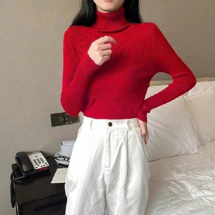 人気なリブニット 無料 ベーシックニット 百掛け タートルネック アンダーウェア 無地 ニットトップス着痩せ ックセーターカシミヤタッチ韓国ファッション 長袖ニット