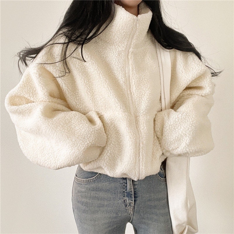 アウター 立ち襟ショートスウェット レディース 裏起毛厚手 ゆったり ラムズフリースカーディガン ファスナー アウター 暖かい インナーアウター ダウンジャケット コート レディース