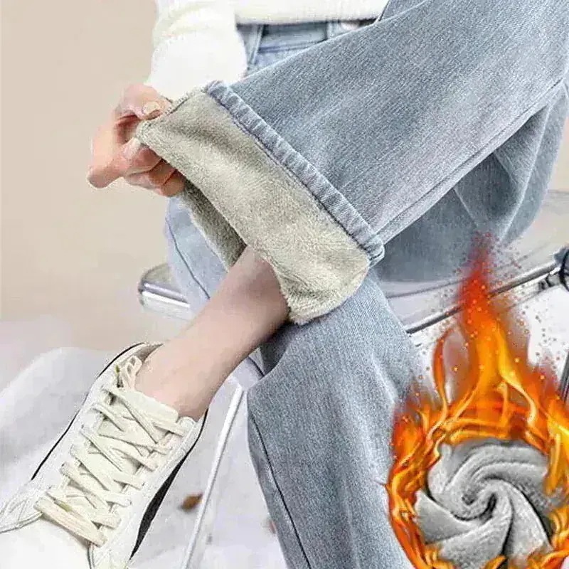 無料レディース ジーンズ 裏起毛 四ジーンズ デニムパンツ ロングパンツ ポケット付き ボタン付き ジップ付きロングデニム ハイウエスト ゆったり 厚手 あったか 暖かい デニムボトムス ス