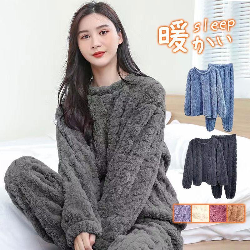 パジャマ 上下セット ウェア レディース もこもこ セットアップ 着る毛布 裏起毛 裏ボア 寝巻き 暖かい 厚手 部屋着 パジャマセット