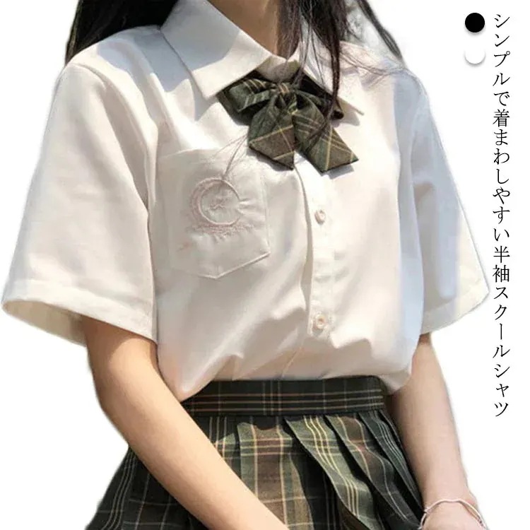韓国 スクールシャツ 女子 半袖 シャツ ブラウス 刺繡 スクール 無地 ウェア 制服 中高生 高校生 中学生 学生 スクールブラウス レディース 形状安定 半袖 シャツ ブラウス ワイシャ