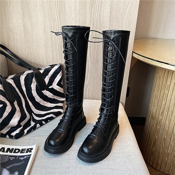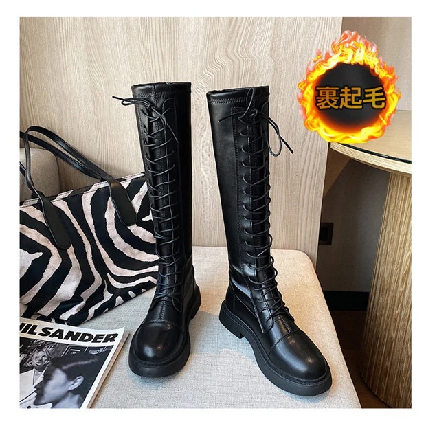 ロングブーツ レディース 美脚 ブーツ 長靴 紐編み上げ 防寒 歩きやすい おしゃれ ローヒール PU 裏起毛あり カジュアル 疲れにくい