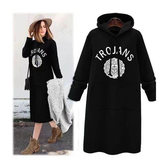 韓国ファッション スウエット ワンピース 裏起毛 膝下丈 レディース ロング丈 パーカー