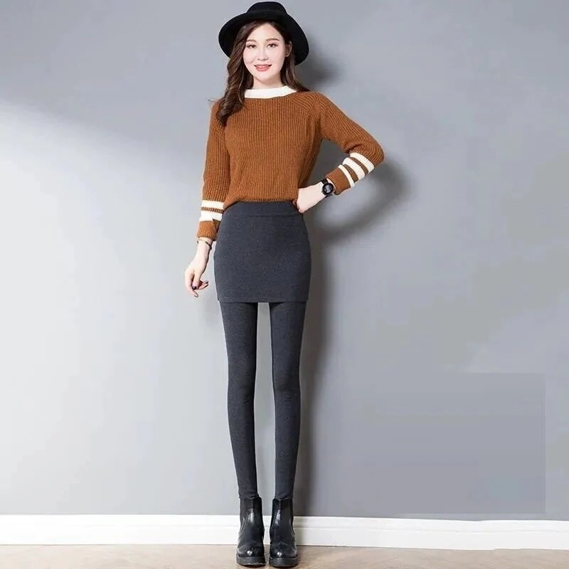 スキニーパンツ 脚長効果スキニーパンツ ワイドパンツ ニットパンツのレッグウエア裏起毛ファッション 厚手アウターウエア フェイクレイヤード 暖かい スキニーパンツ防寒 大きいサイズ