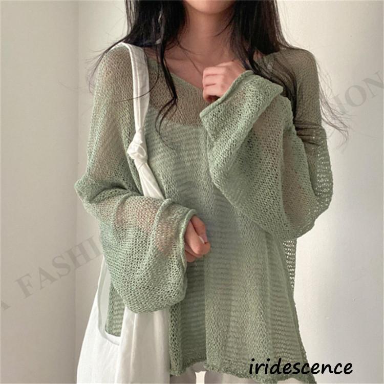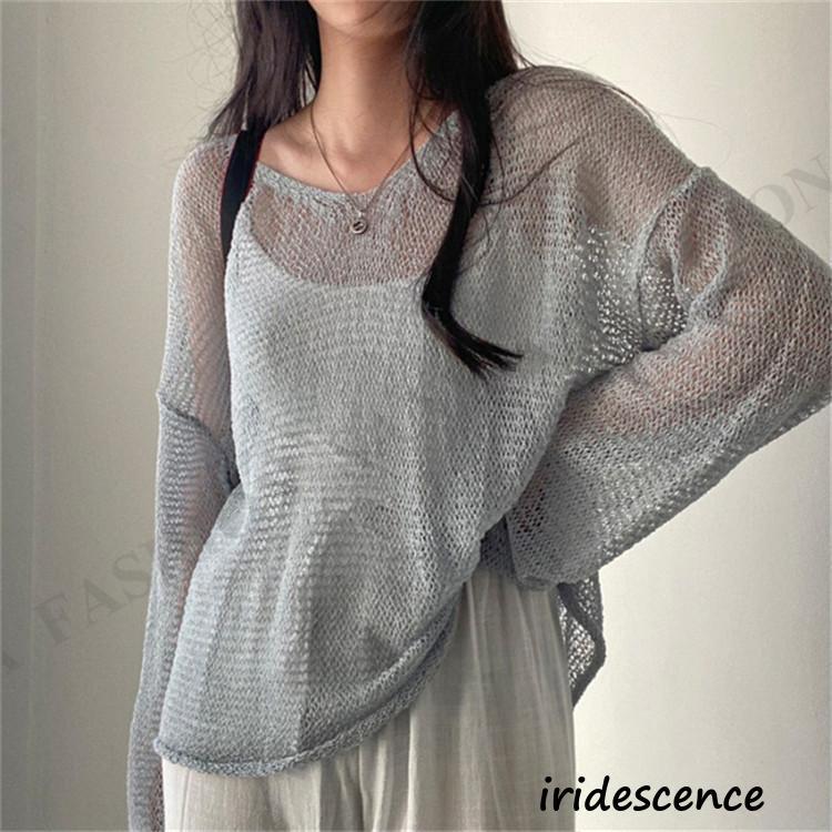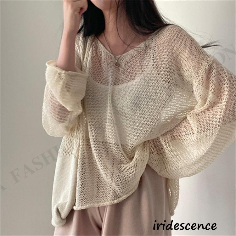 透かし編みニット 長袖レディース メッシュ肌見せ サマーニット カットソー 夏 レイヤード 重ね着 トップス