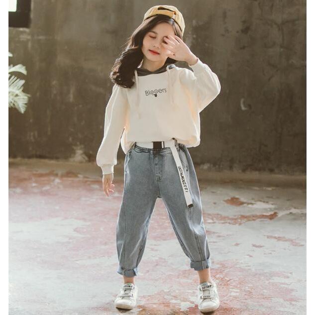 子供服 長袖 パーカー 上下セット ジャージ トップス デニムパンツ 可愛い 2点セット 女の子 お姫様 おしゃれ キッズ 春秋服