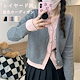 ニットカーディガン レイヤード風 アウター 配色 秋冬 レディース ニットトップス 羽織り ニット カーディガン ショート丈 ニットパーカー 暖かい 保温 バイカラー ニットウエア Vネック 無地 ニ
