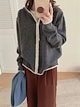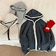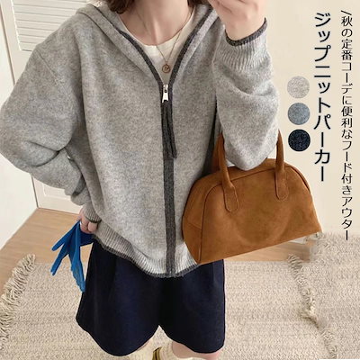 ニットパーカー フード付き ジップアップ ニットカーディガン 秋 冬 レディース トップス 配色 ニットソー パーカー ニット 羽織り 防寒 暖かい ジップニット ショート丈 長袖 カジュアル ニット