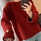 ニットセーター プルオーバー ニット トップス レディース カットソー 飾るボタン uネックニット 無地 プルオーバー クルーネック インナー 長袖 秋冬 コーデ ながそで ベーシック リブニット 秋
