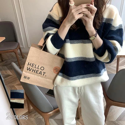 ニット トップス レディース セーター ニットセーター ボーダー柄 秋冬 チュニック ニットソー プルオーバー オーバーサイズ アウター 大きいサイズ セーター ゆったり ドルマン 柔らかい お洒落