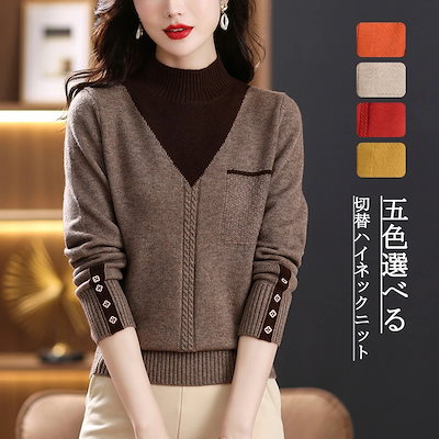 ハイネックニット ニット ニットソー トップス レディース 秋冬 インナーニット vネック ニットセーター リブ編み リブニット 切替 長袖 ブラウス セーター カットソー 防寒 秋 エレガント 防寒